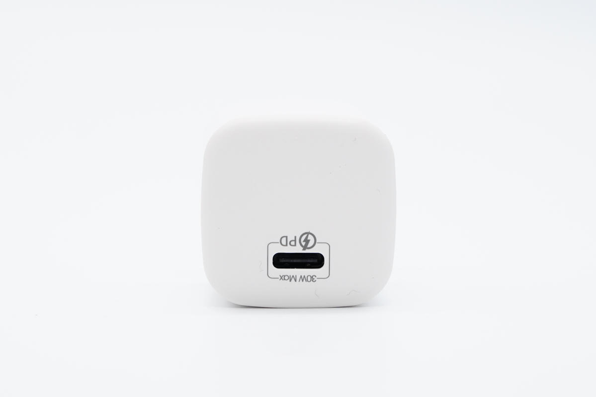 機身頂部微凸,USB-C口靠邊緣布局,黑色膠芯不露銅,接口旁印有30W Max和PD字樣。
