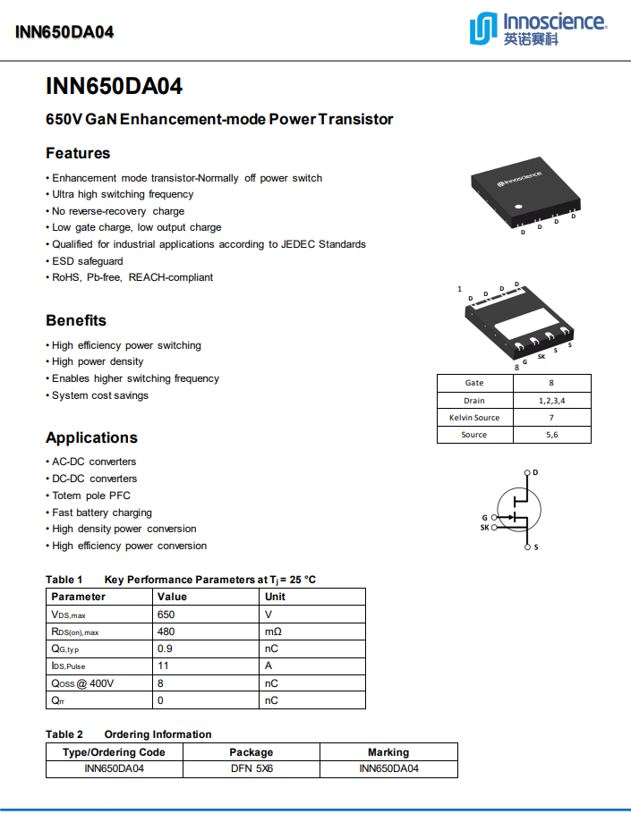 英諾賽科INN650DA04資料信息。