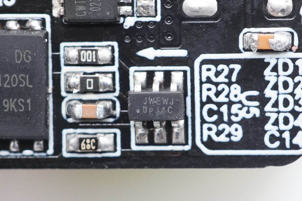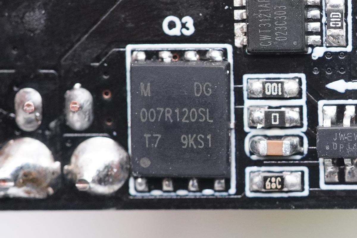 輸出VBUS開關管特寫,絲印CWT3121AP。