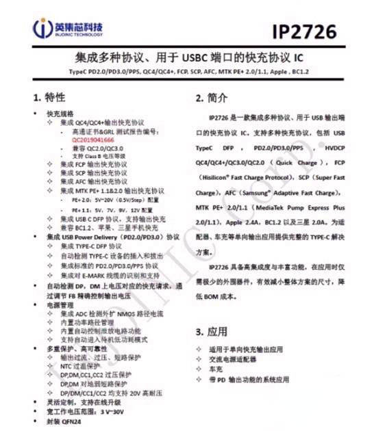 充電頭網了解到,英集芯IP2726已經通過了高通QC4+認證,拿到了中國大陸地區第一張QC4+認證證書。
