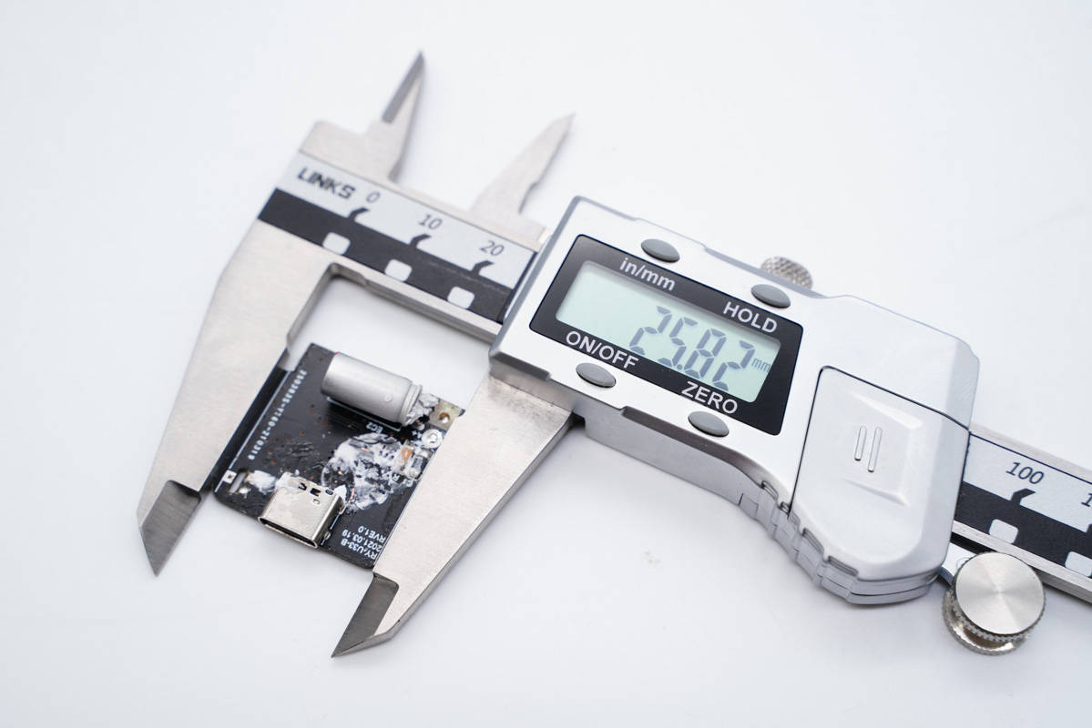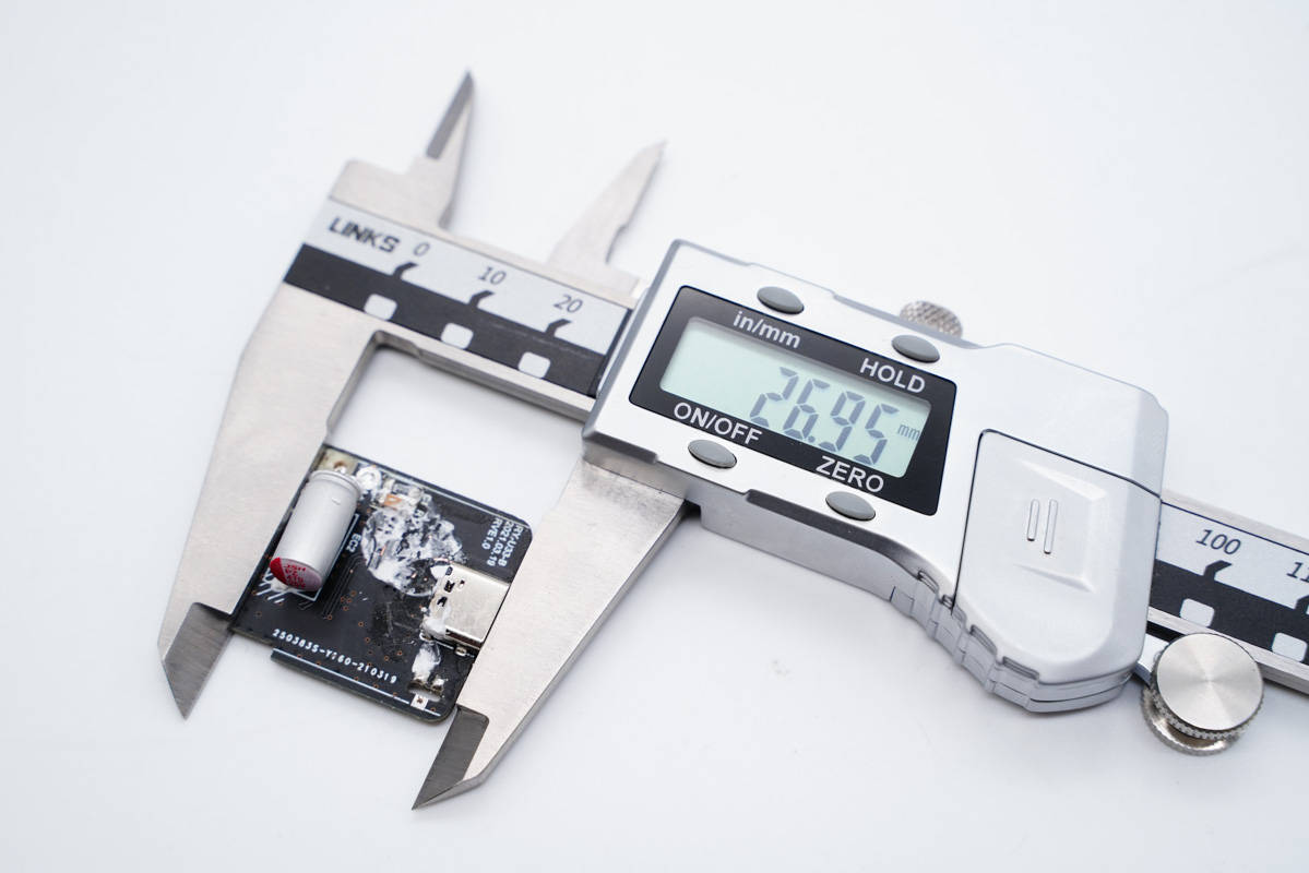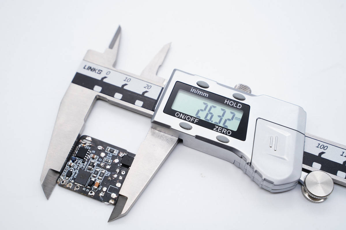 最后使用游標卡尺測得充電器輸入端小板長度為26.32mm。