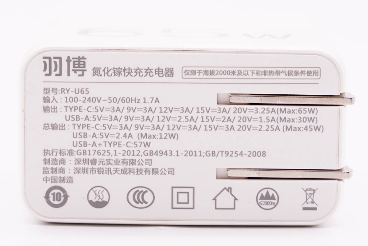 一、羽博65W氮化鎵快充外觀