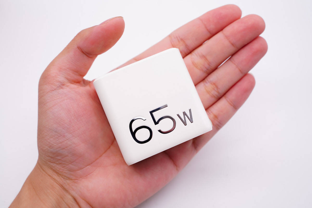 和蘋果61W充電器直觀對比,體積優勢明顯。