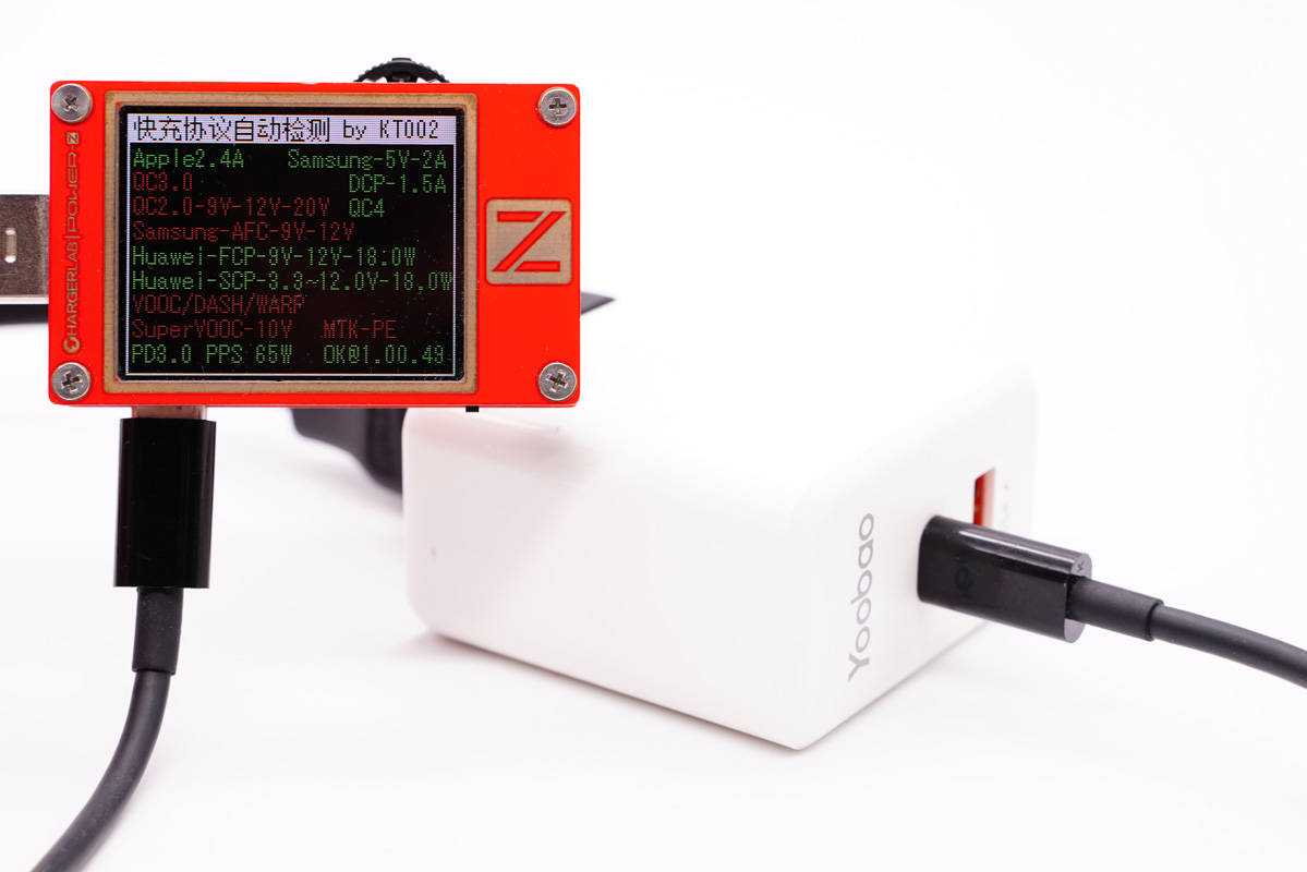 另外使用KT002測得USB-C口支持Apple 2.4A、Samsung 5V2A、DCP協議,以及FCP、SCP、PD3.0、PPS快充協議。