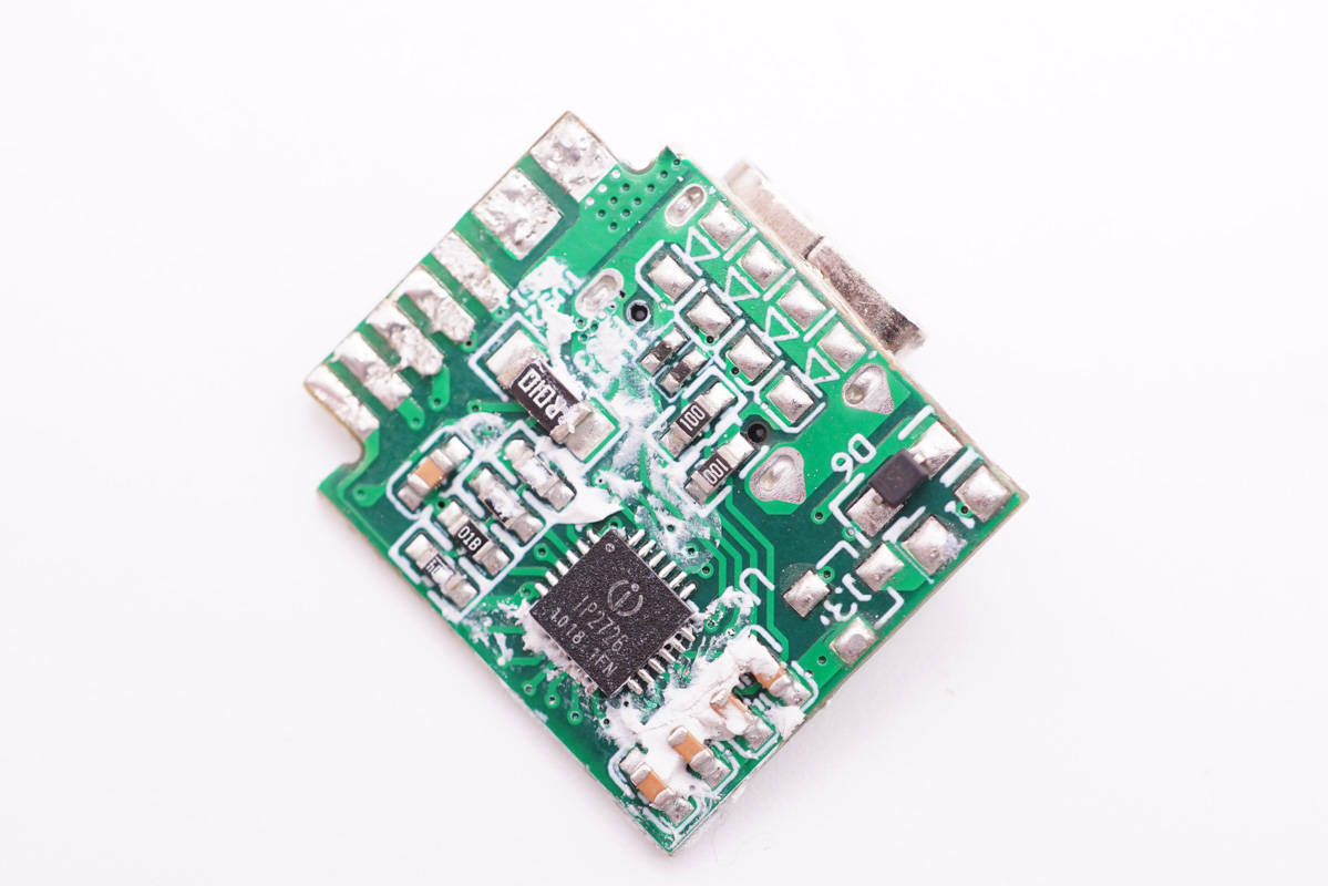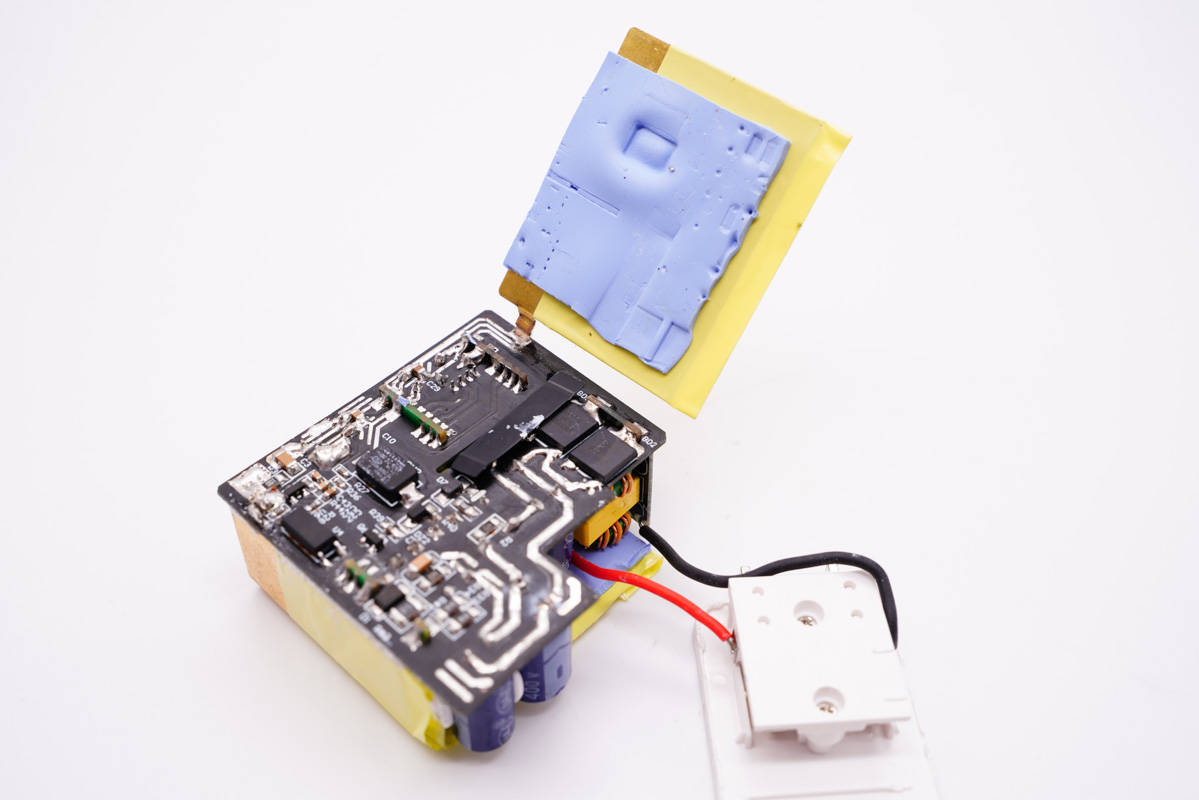 將輸入端外殼拆開取出充電器,插腳和PCB板使用導線連接通電。