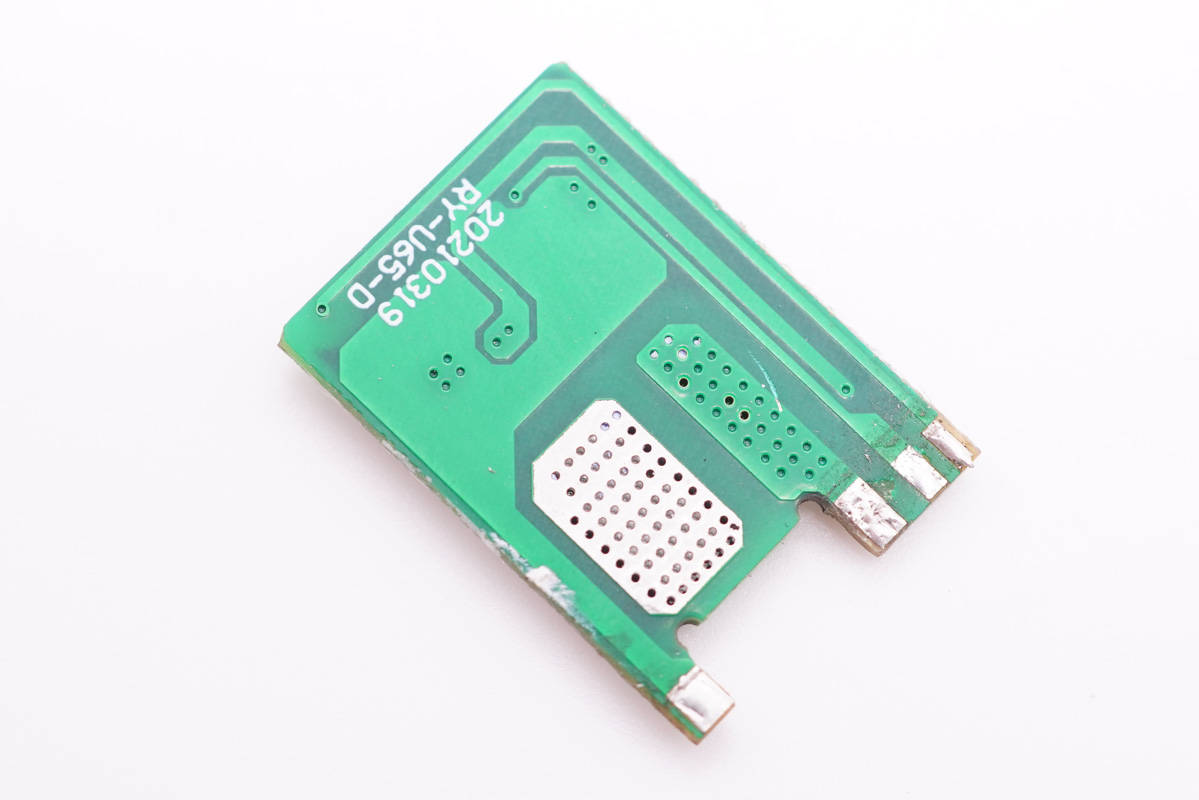 背面可以看到小板對應氮化鎵功率芯片處做了過孔和露銅加錫處理,幫助散熱。