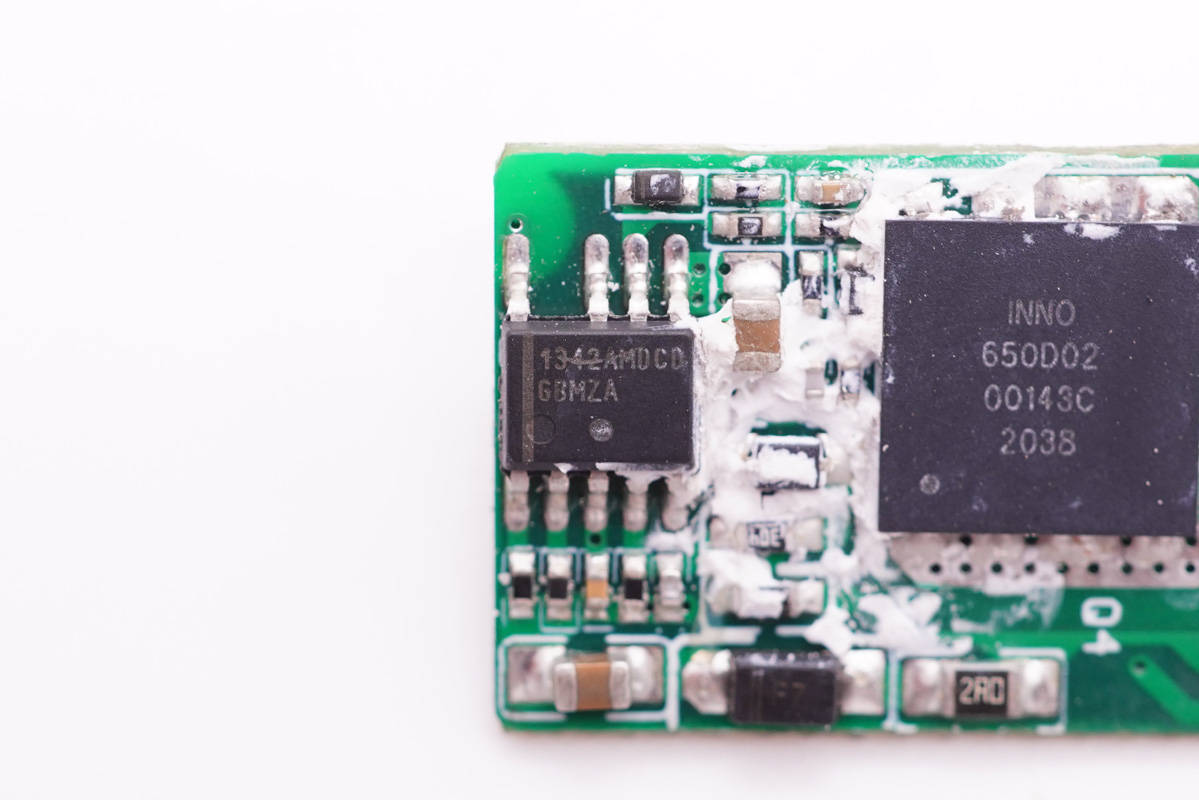 充電器主控芯片為ON安森美NCP1342,這是一顆高頻初級PWM控制器,內置主動X2電容放電和多重完善的保護功能,具有超低的待機功耗。