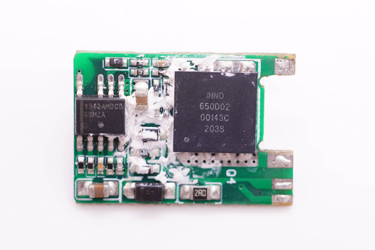 小板正面設有開關電源主控芯片和氮化鎵功率開關管。