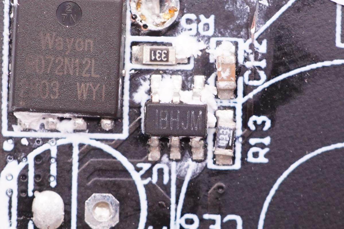 輸出VBUS開關管特寫,絲印CWT3121AP。