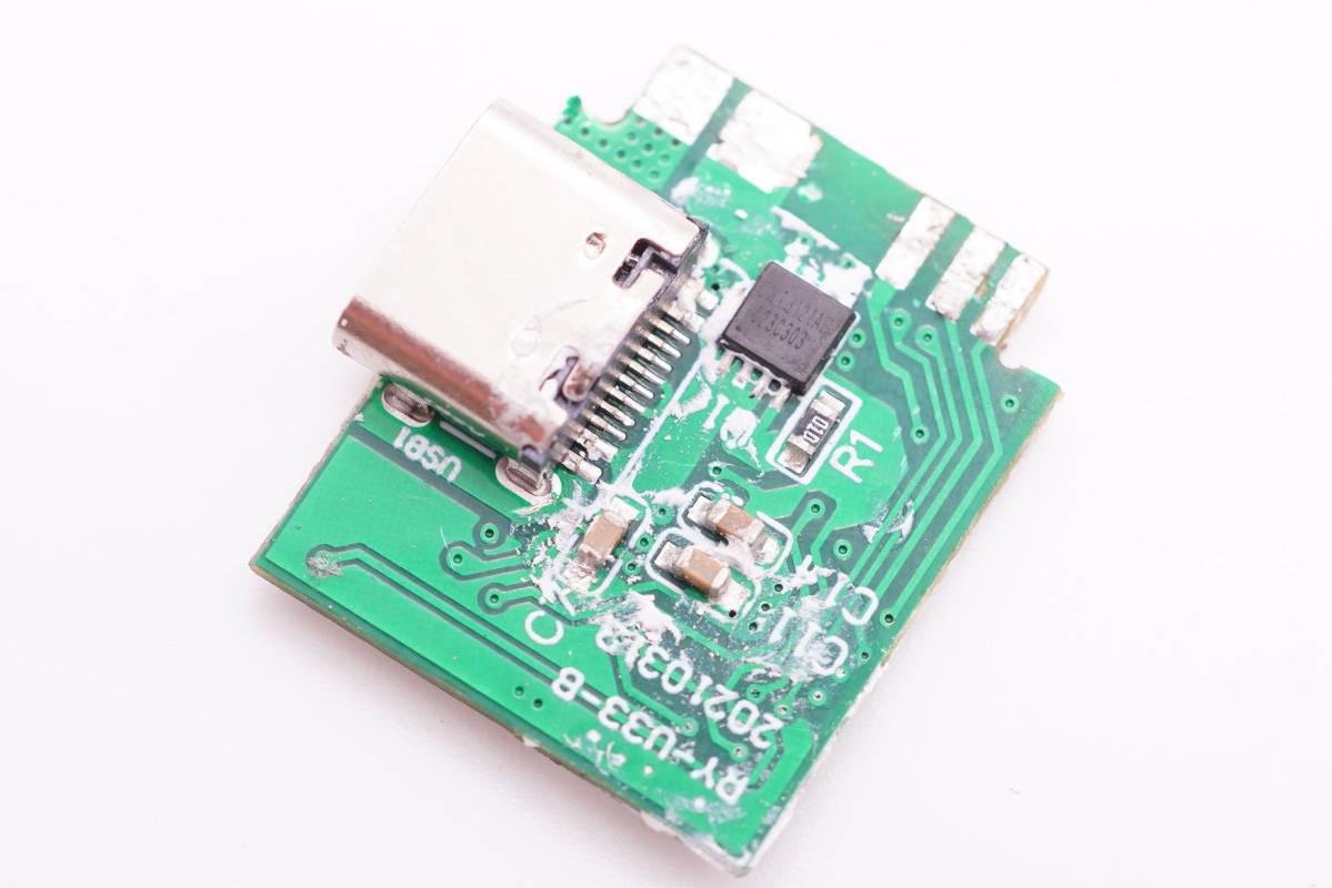 USB-C母座所在小板背面設有協議芯片。