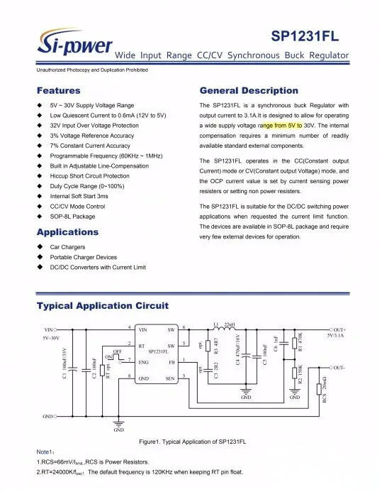 硅動力SP1231FL相關規格資料。