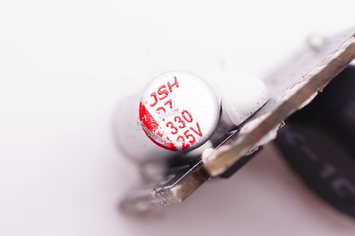 降壓輸出濾波固態電容規格為25V 330μF,也是來自益陽萬京源。