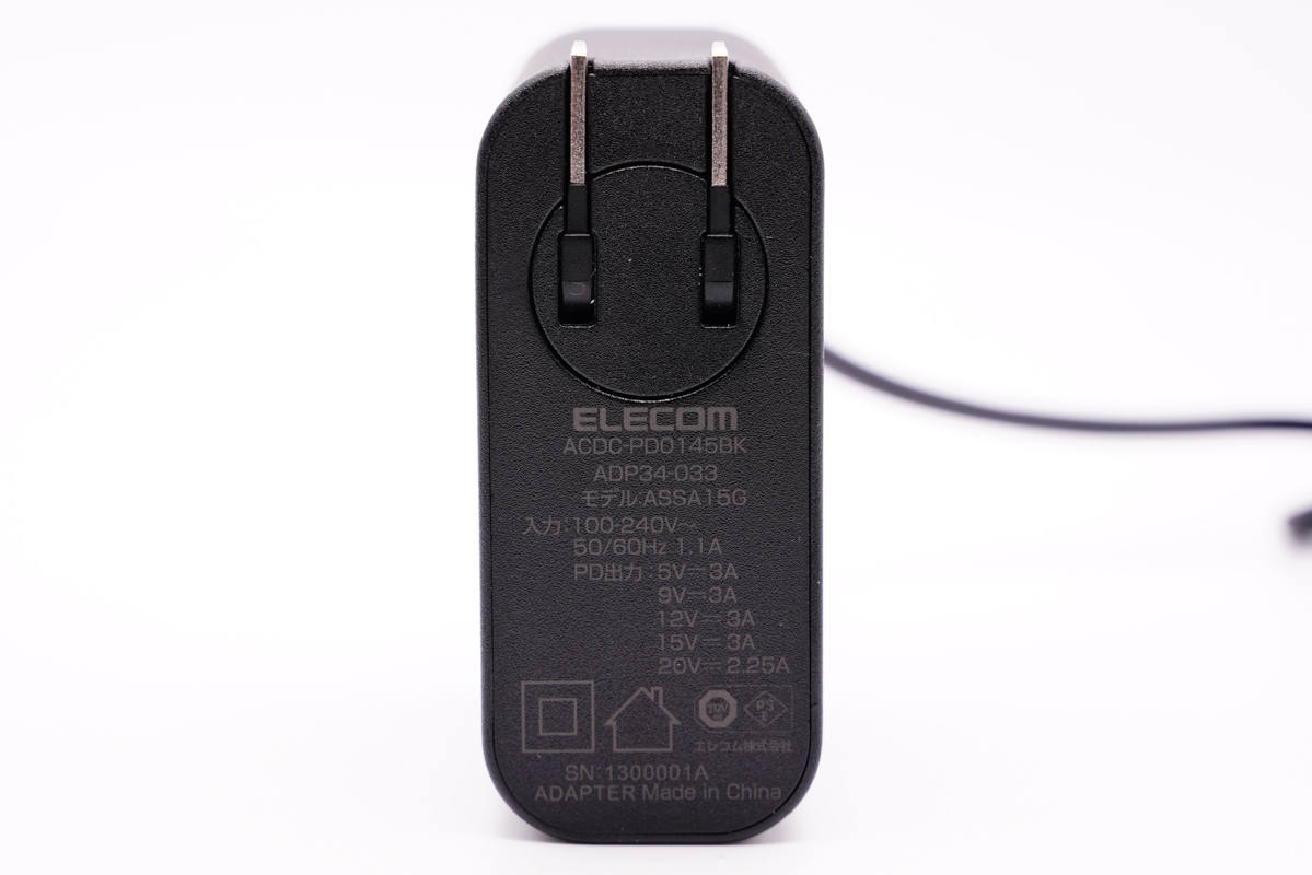 ELECOM宜麗客這款充電器自帶輸出線纜,用戶可以省去再為其配線的煩惱,另外插腳可以旋轉也成為吸引消費者的另一大特點。充電器支持PE2.0、PD3.0快充協議,具備5V3A、9V3A、12V3A、15V3A、20V2.25A五組齊全電壓檔位,可以滿足手機、平板以及部分筆記本的快充需求。