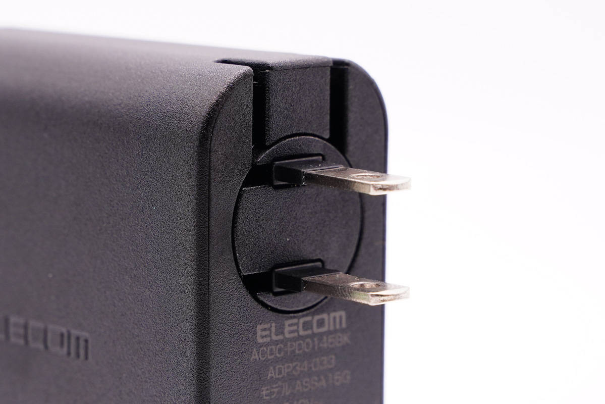 此外輸入端配備可折疊美規插腳,攜帶方便且不會刮傷包里其它設備。