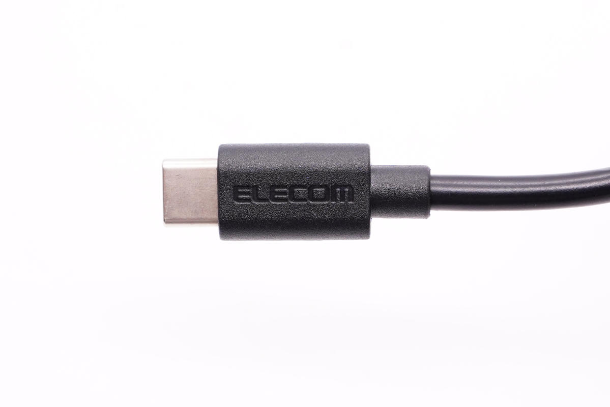 USB-C線頭磨砂處理,并凹印ELECOM品牌。