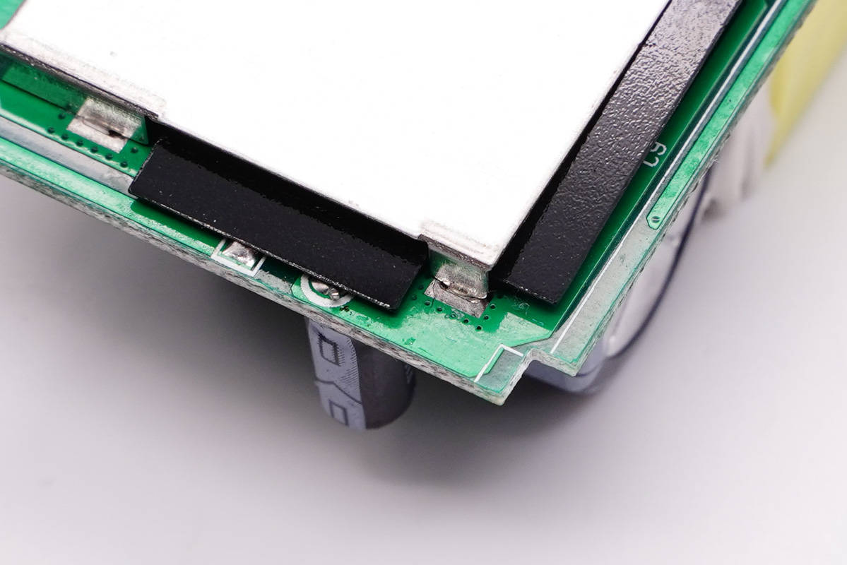 主板背面覆蓋隔離板和散熱片,散熱片低壓側粘貼絕緣膠帶。