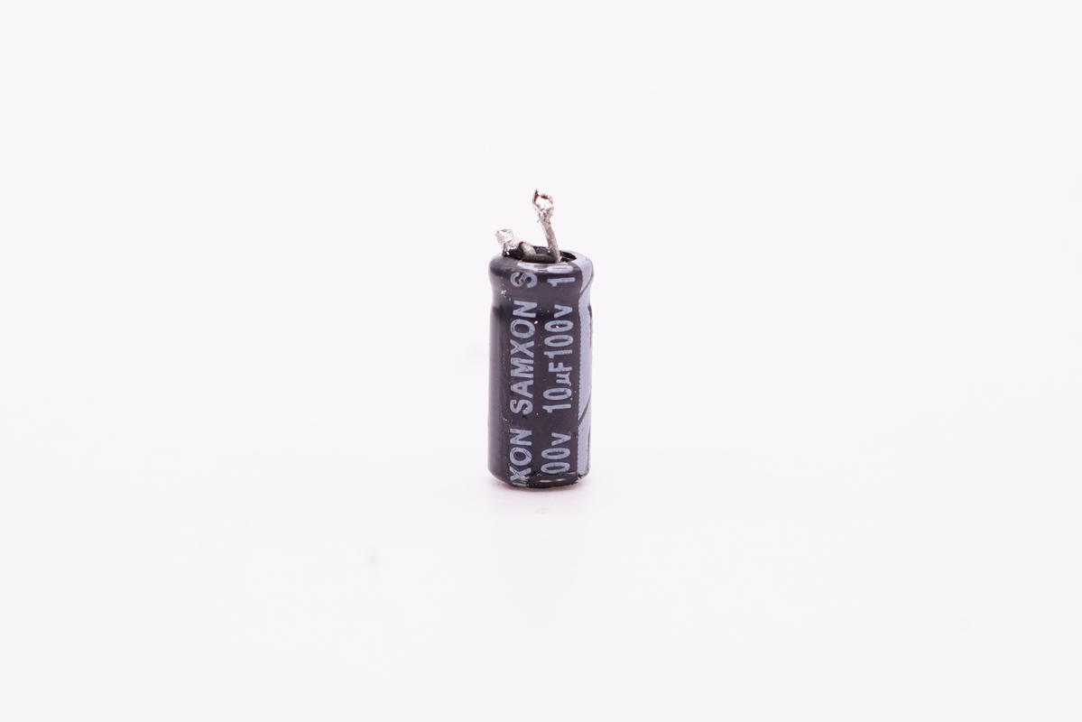 主控芯片供電電容特寫,也是SAMXON品牌。規格為100V 10μF。