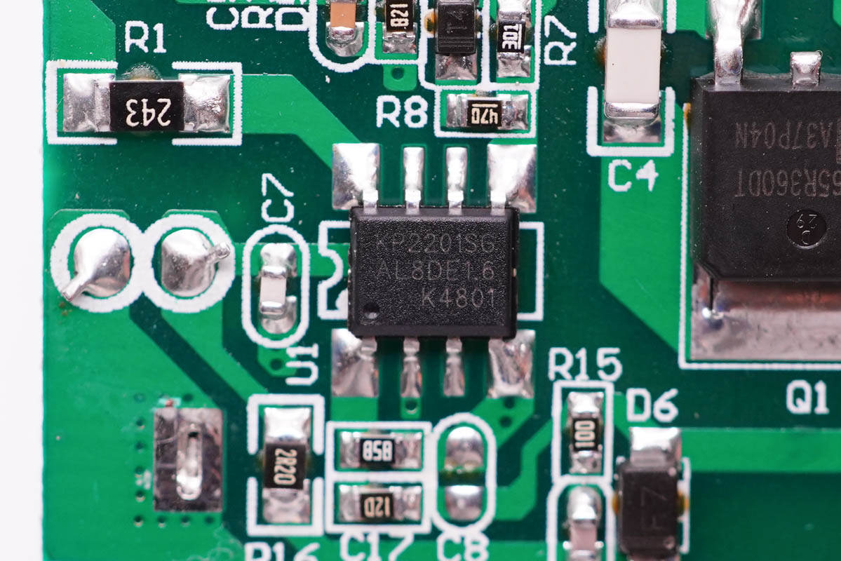 協議芯片采用珠海智融SW2303。這是智融開發的一款高集成度USB Type-C/Type-A接口快充協議芯片,支持PD、QC、FCP、高低壓SCP、AFC、SFCP以及PE等主流快充協議;支持光耦反饋和FB反饋兩種工作模式;支持4KV ESD HBM。