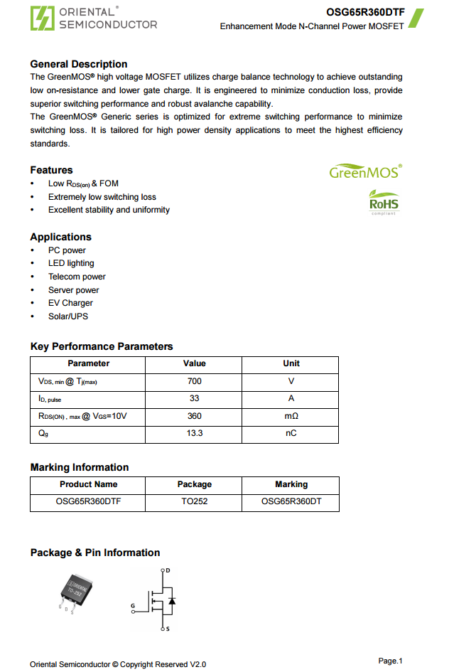 東微OSG65R360DTF資料信息。
