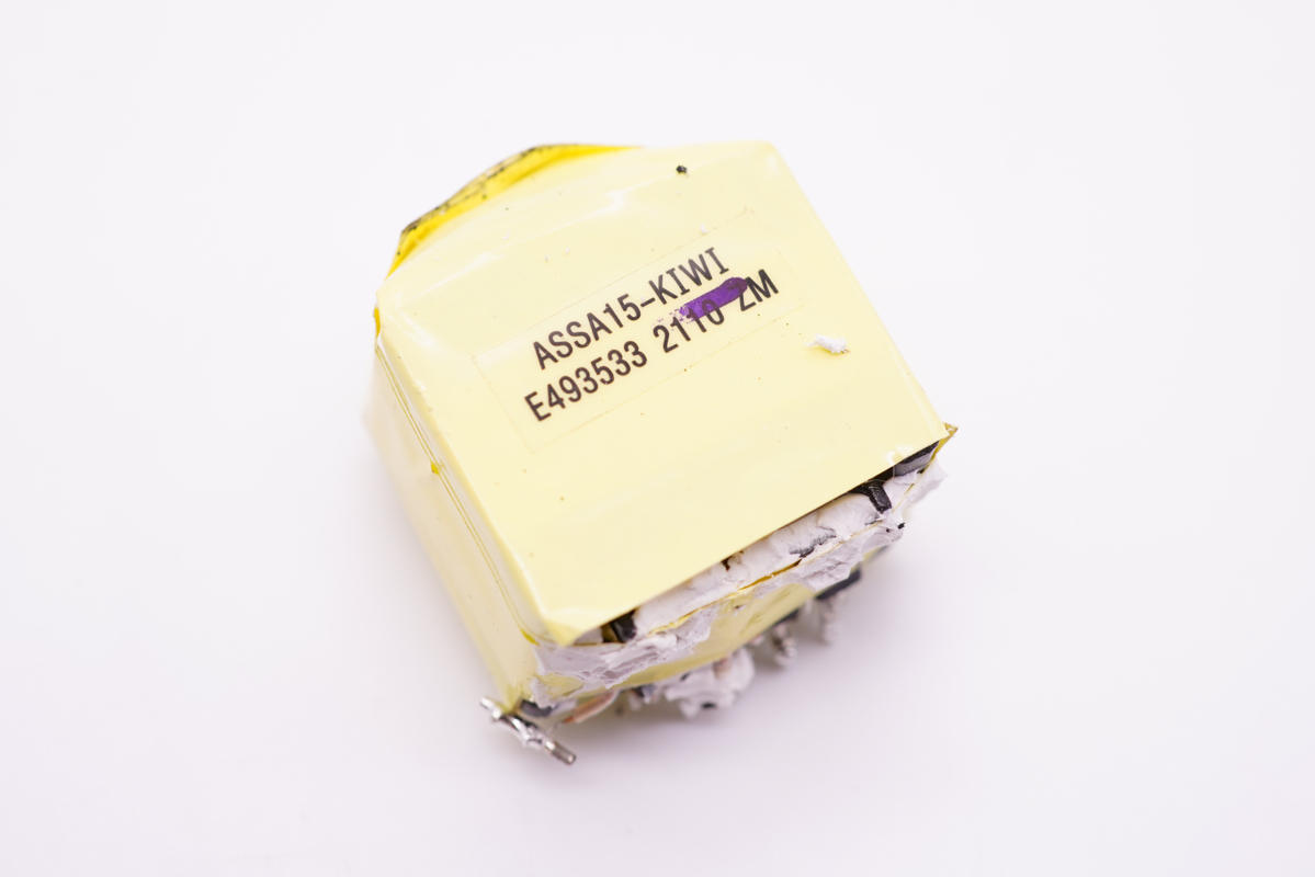 將輸入端外殼拆開取出充電器,插腳和PCB板通過導線連接通電,導線兩端分別套有膠套和打膠處理。共模電感、高壓濾波電解電容、變壓器等器件也打膠加固。