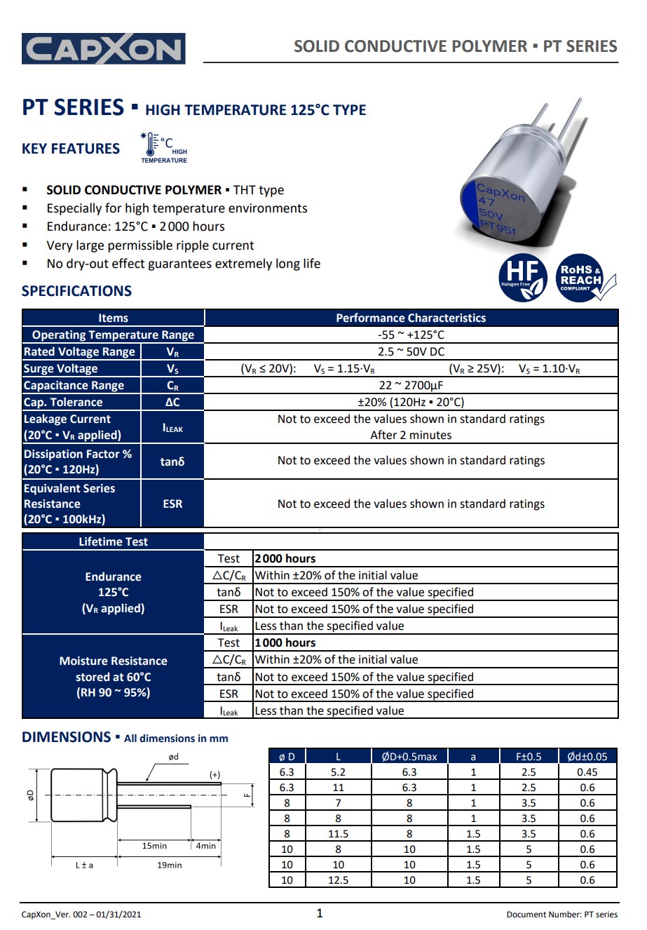 豐賓PT系列電容規格書。