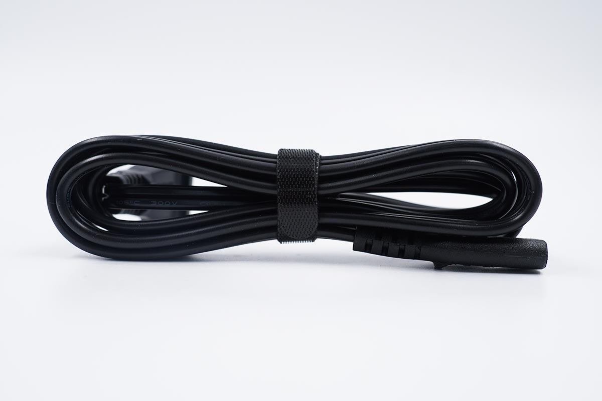 輸入端采用8字接口,外殼上印有充電器參數和認證信息