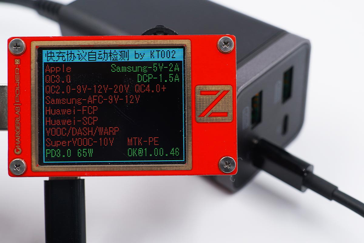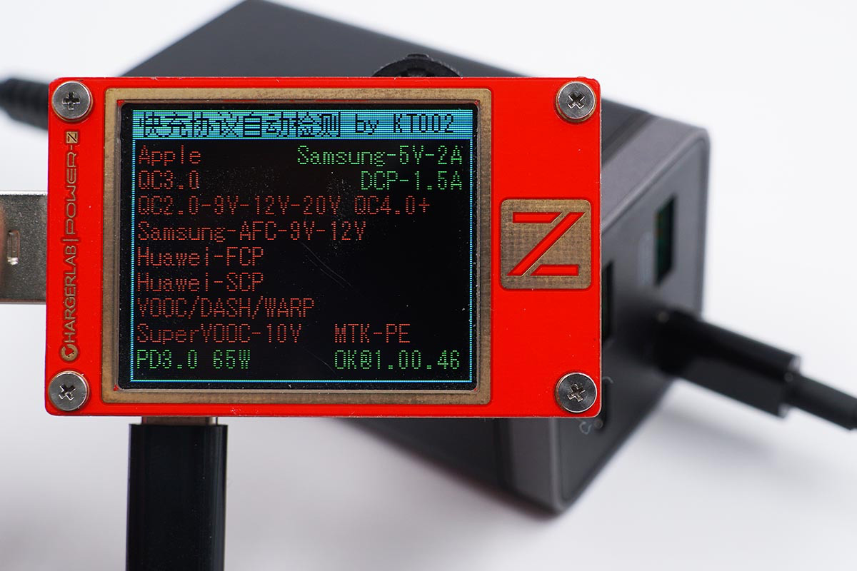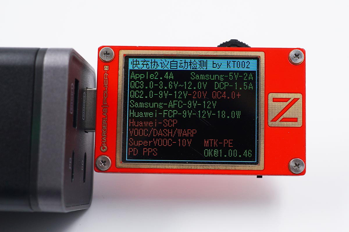 使用ChargerLAB POWER-Z KT002測得其中一個USB-C口支持Samsung 5V2A、DCP協議,以及PD3.0快充協議。
