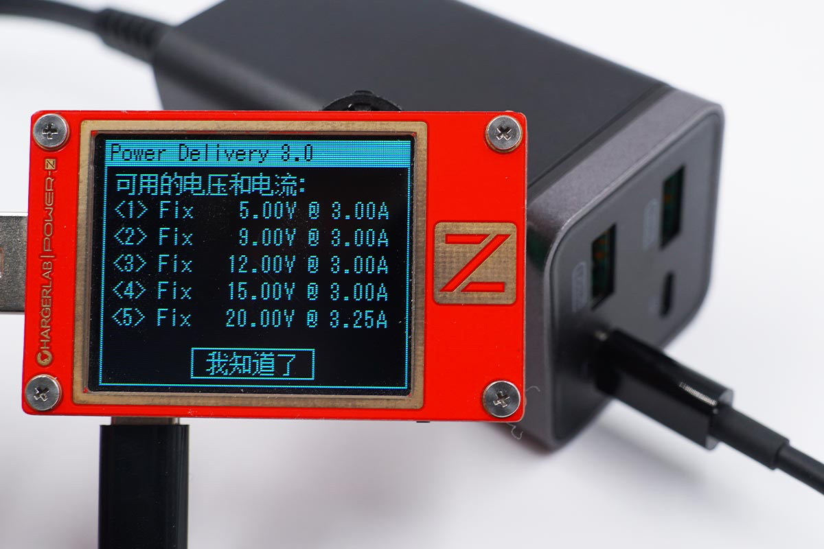 并且同樣具備5V3A、9V3A、12V3A、15V3A、20V3.25A五組固定電壓檔位。