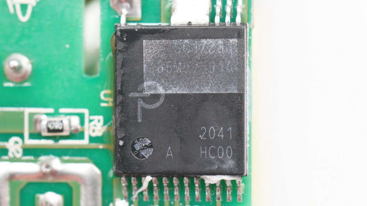 USB-A口開關電源主控芯片來自PI,芯片打磨處理,信息不詳。
