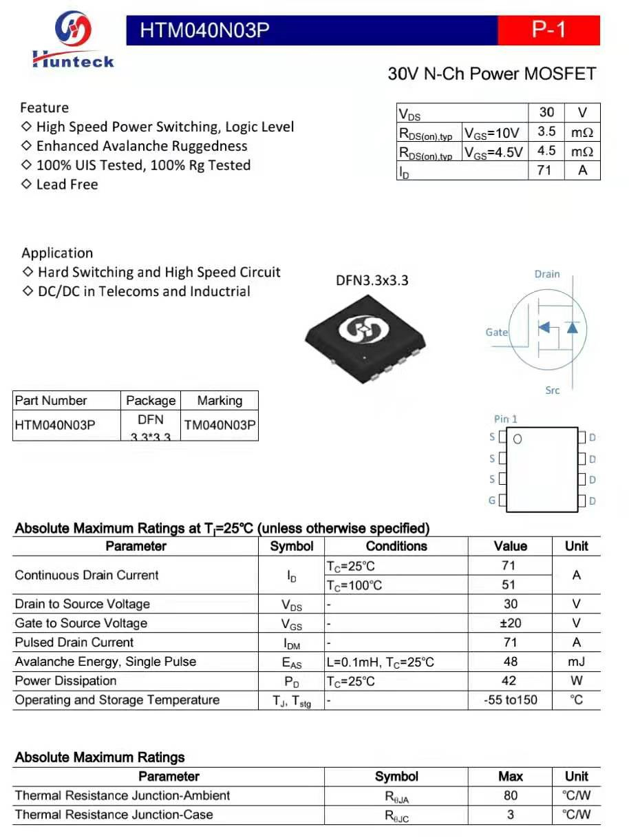 恒泰柯HTM040N03P資料信息。