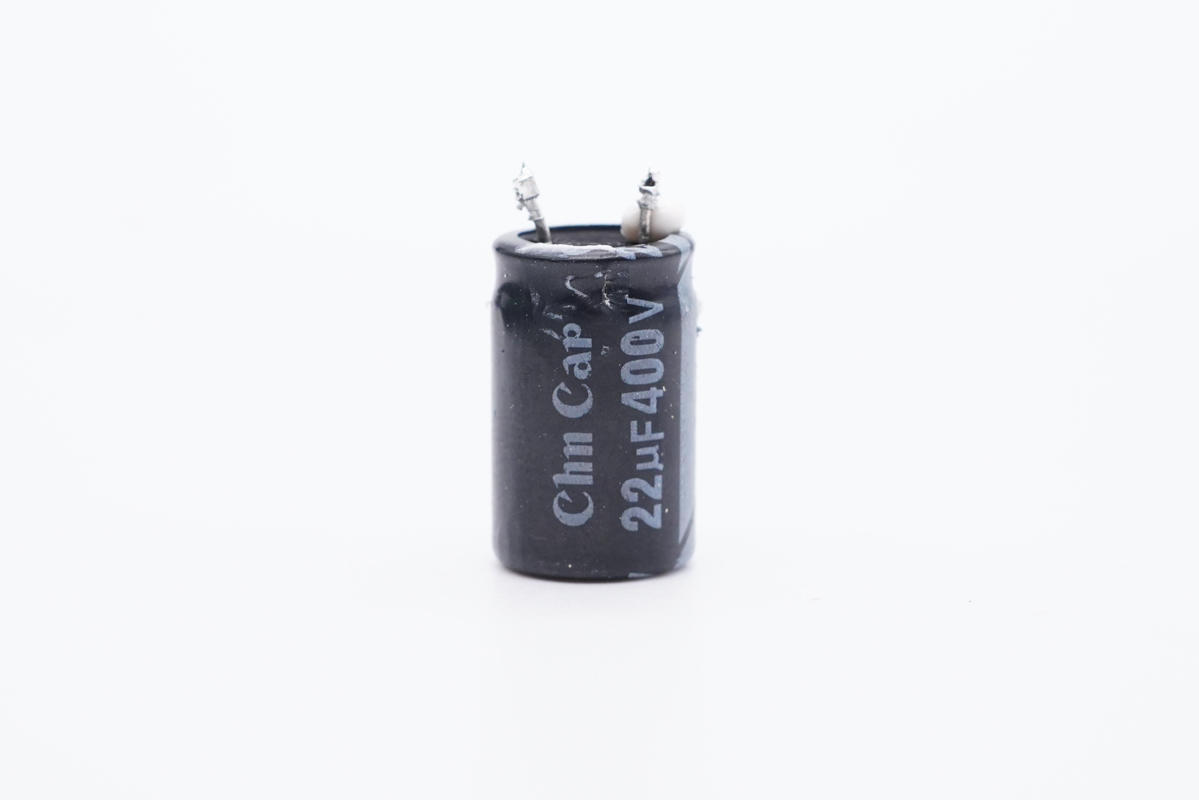 黑色高壓濾波電解電容來自深圳華容偉業電子有限公司,規格為400V 22μF。