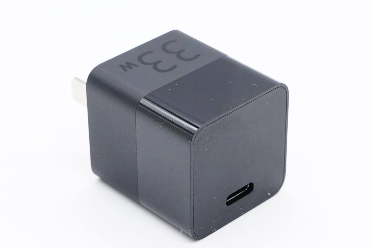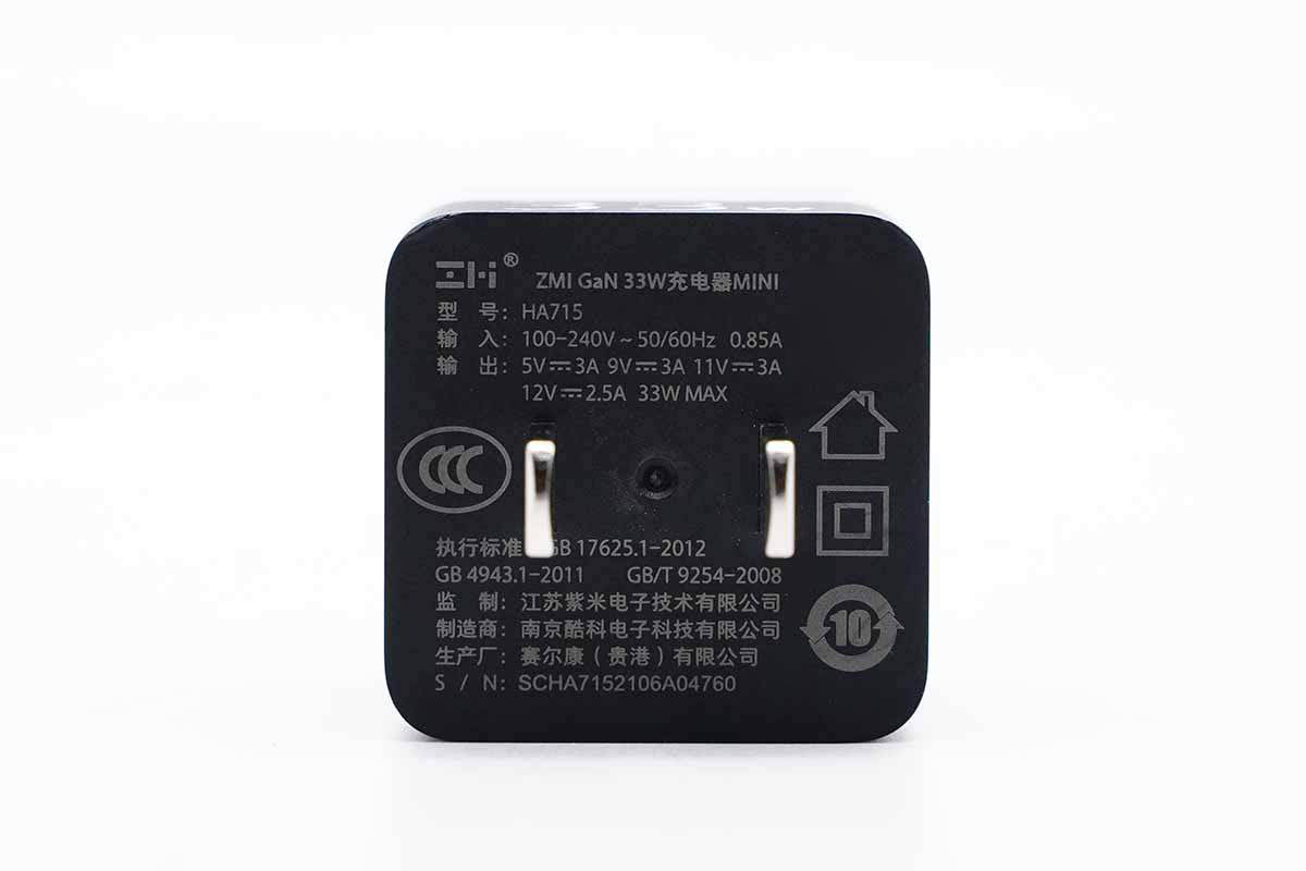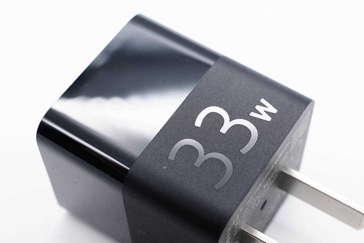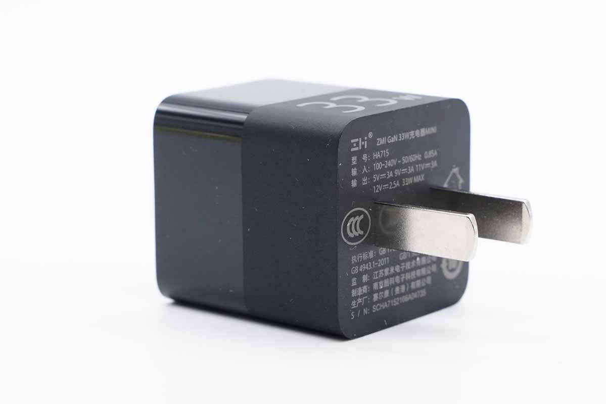 紫米33W氮化鎵充電器采用PC阻燃材質黑色外殼,腰身亮面和磨砂撞色設計,具有不同的觸感,可增加用戶上手體驗感。紫米這款從包裝到機身設計還是有自己的獨特風格的,并未直接將小米的照搬過來然后換個牌子。