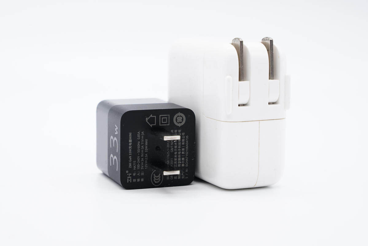 和蘋果30W充電器直觀對比,體積優勢非常明顯。