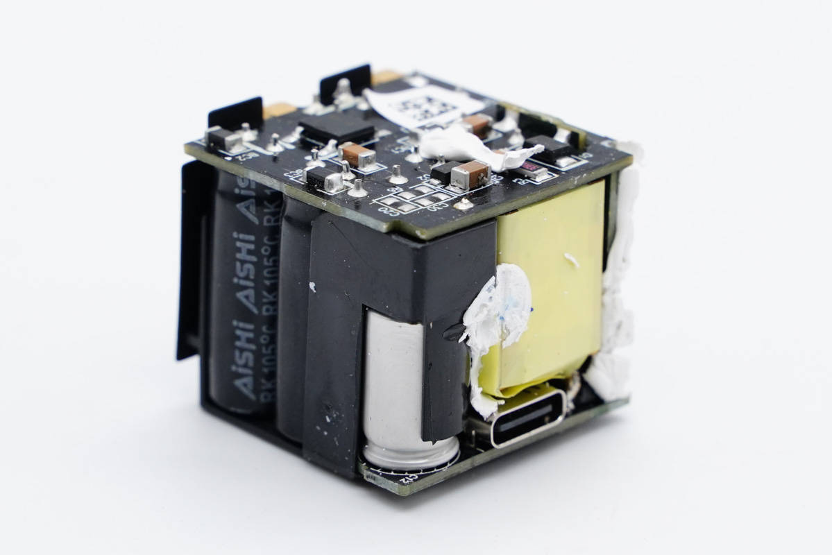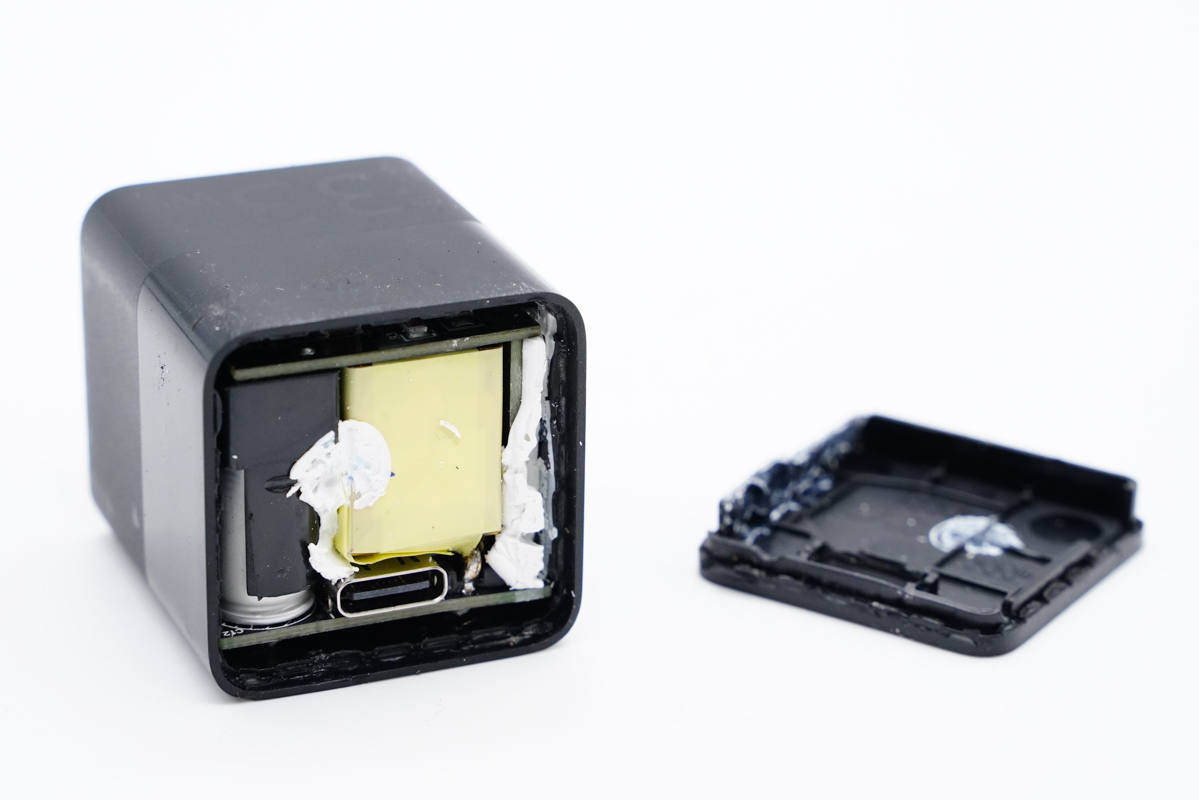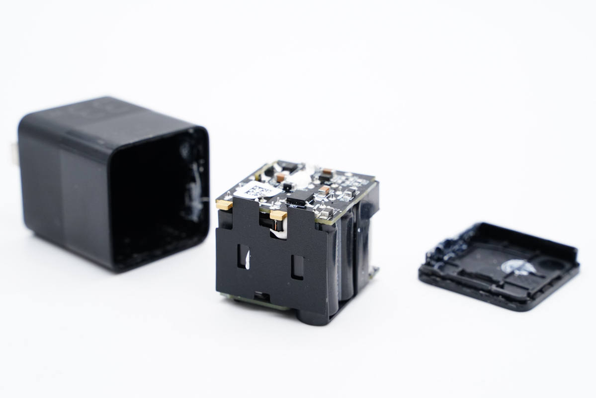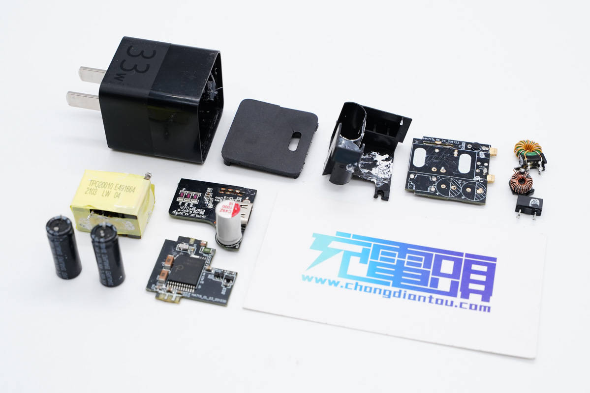小編在拿到紫米33W氮化鎵充電器后,和小米的初步對比發現,這兩款充電器造型、性能上都一樣。不過也不能因此草率下結論說這兩款充電器就是一樣的,畢竟充電器內部不可見,說不定方案就有些許差別。那么下面充電頭網就對紫米這款進行詳細拆解,看看內部具體設計。