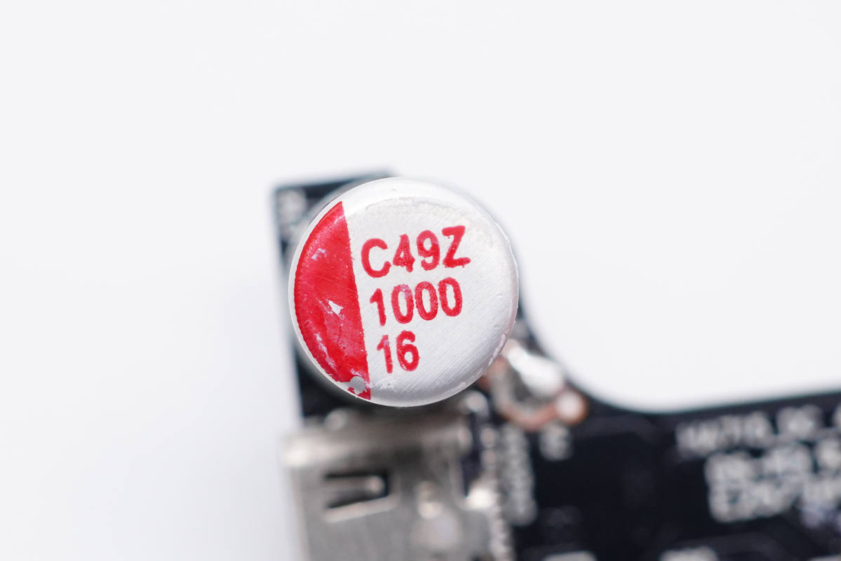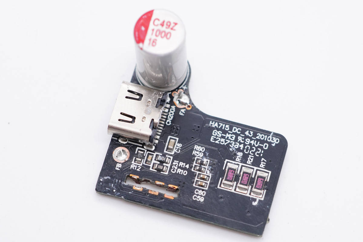 板子拆下,正面設有輸出濾波固態電容以及USB母座。