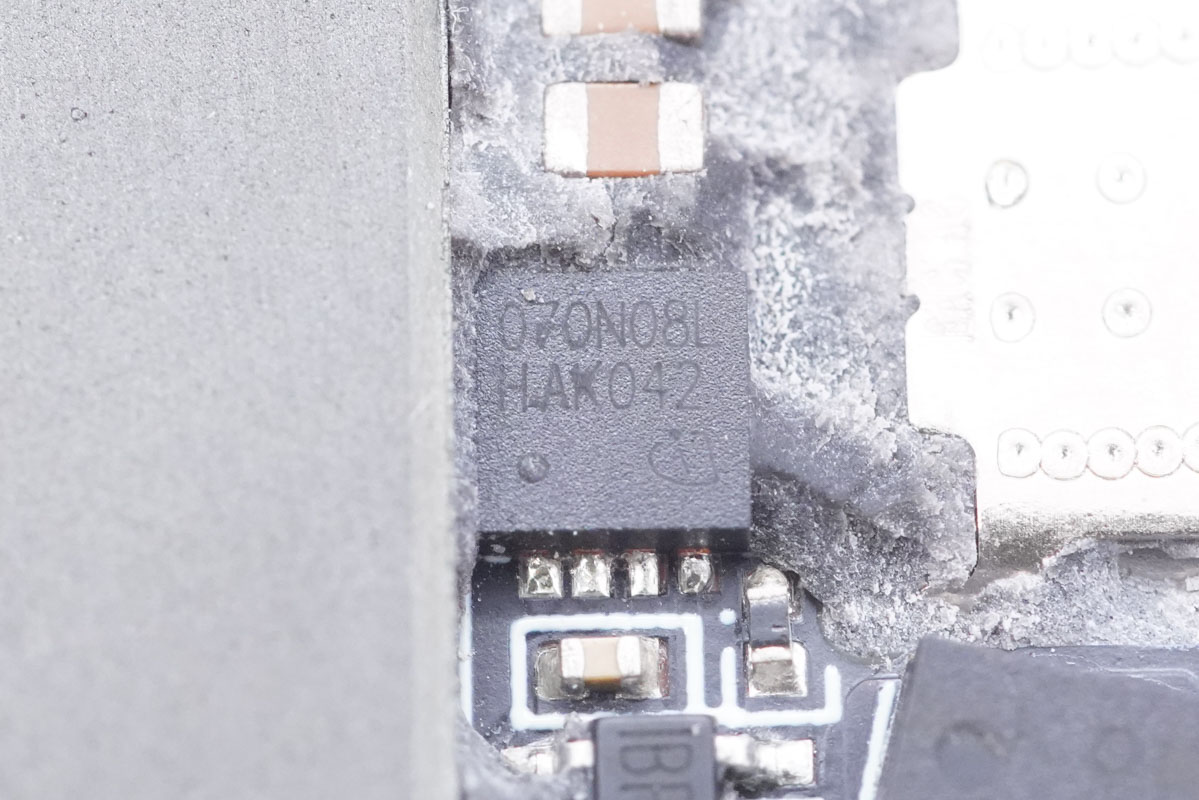 充電頭網通過拆解了解到,充電器內置航空級鉗位二極管、定制集成電感和貼片電容、平面變壓器等器件。充電器初級側采用TI UCC28782A搭配安森美驅動器,控制納微GaNFast氮化鎵功率芯片,次級部分采用MPS MP6908A搭配英飛凌MOS組成同步整流,由立锜協議芯片控制輸出電壓。采用高壓MLCC、基美鉭電容進行輸入輸出濾波。總的來說,和OPPO的50W餅干氮化鎵充電器大同小異。