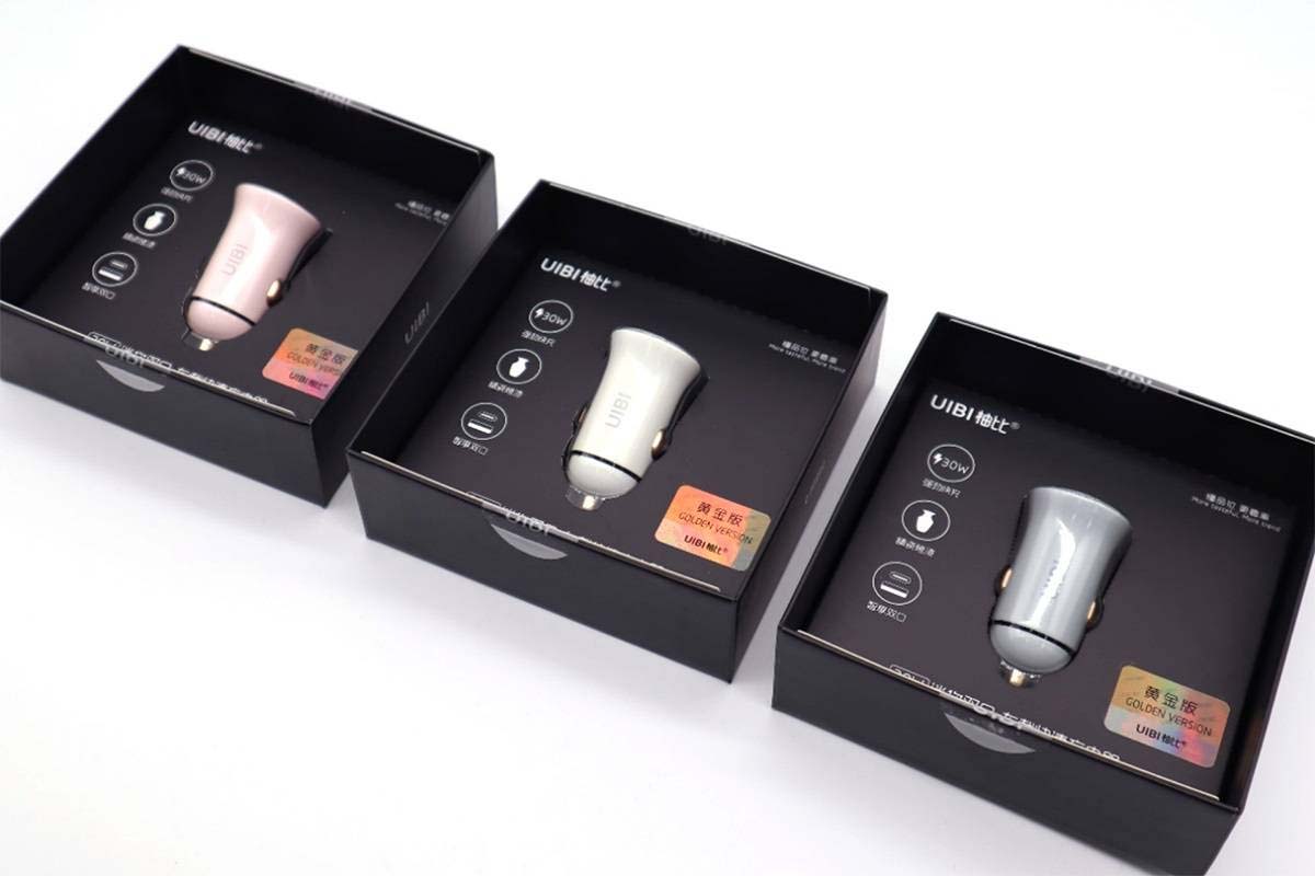 和常規(guī)產(chǎn)品包裝盒不同,UIBI柚比這款車(chē)充的包裝盒采用櫥窗風(fēng)格設(shè)計(jì),有三種款式可選。