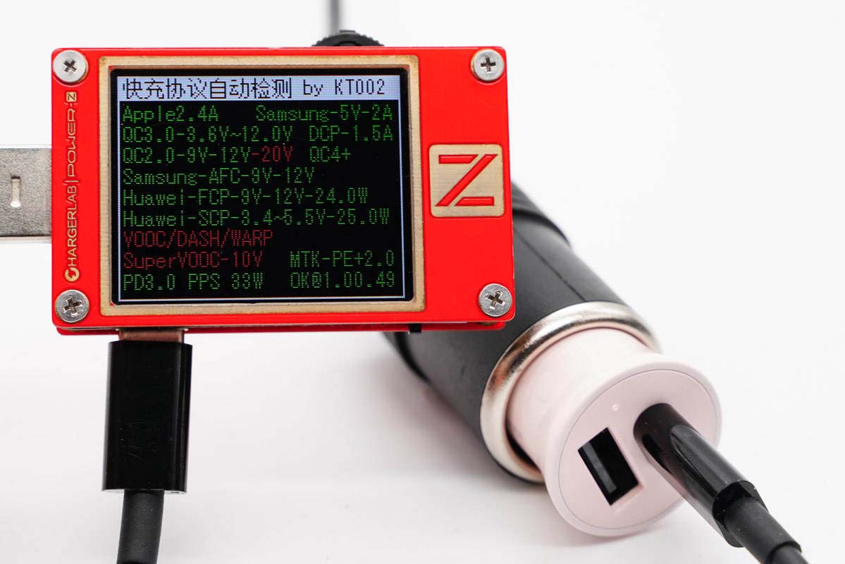 使用ChargerLAB POWER-Z KT002測(cè)得USB-A口支持Apple 2.4A、Samsung 5V2A、DCP協(xié)議,以及QC2.0/3.0、AFC、FCP、SCP、PE2.0快充協(xié)議。