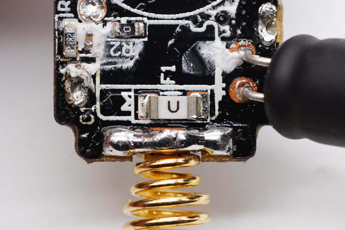 正極彈簧特寫(xiě),鍍金處理。