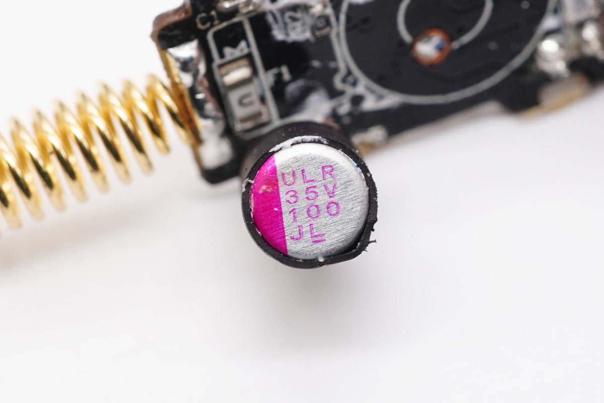 輸入濾波固態(tài)電容特寫(xiě),萬(wàn)裕ULR系列,35V 100μF。