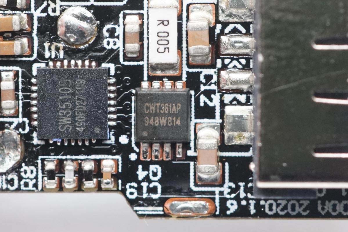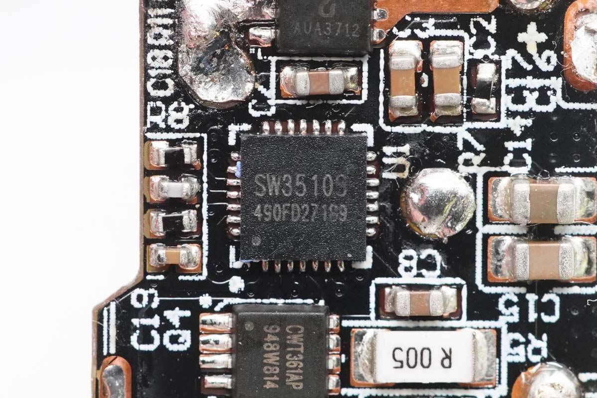 降壓協(xié)議IC采用智融SW3510,用于1A1C接口輸出電壓控制。智融SW3510是一顆內(nèi)置有USB-C口識(shí)別及多種快充功能的高集成度雙口充電芯片,支持A+C口任意口快充輸出,支持雙口獨(dú)立限流。