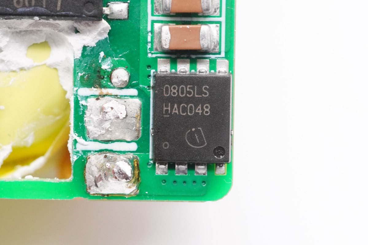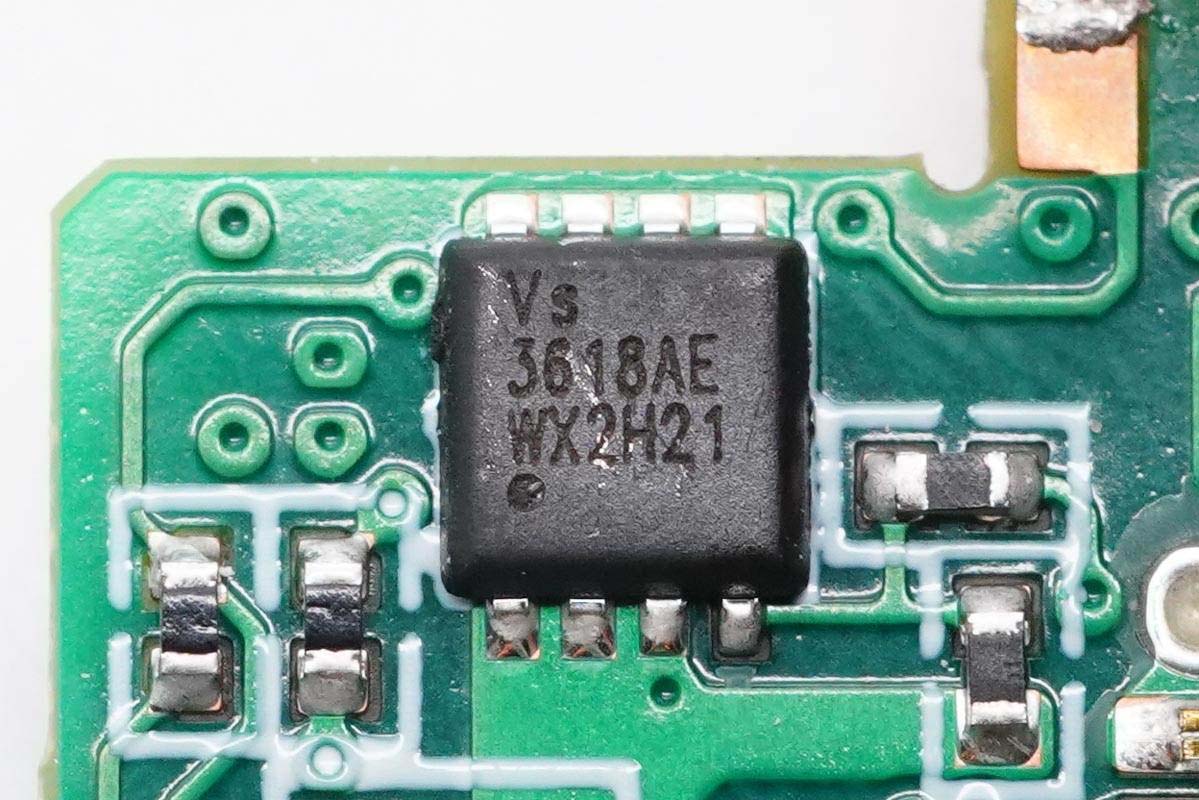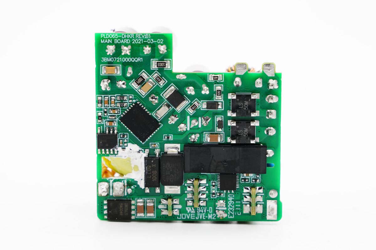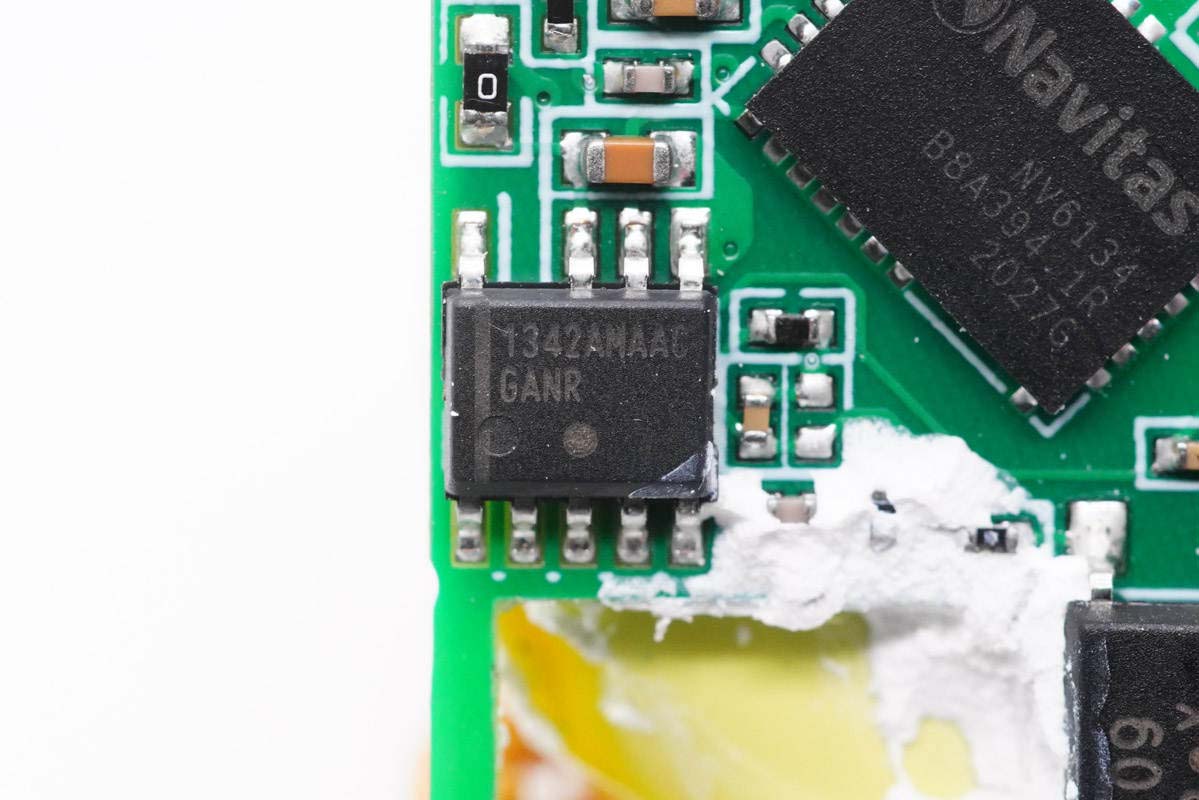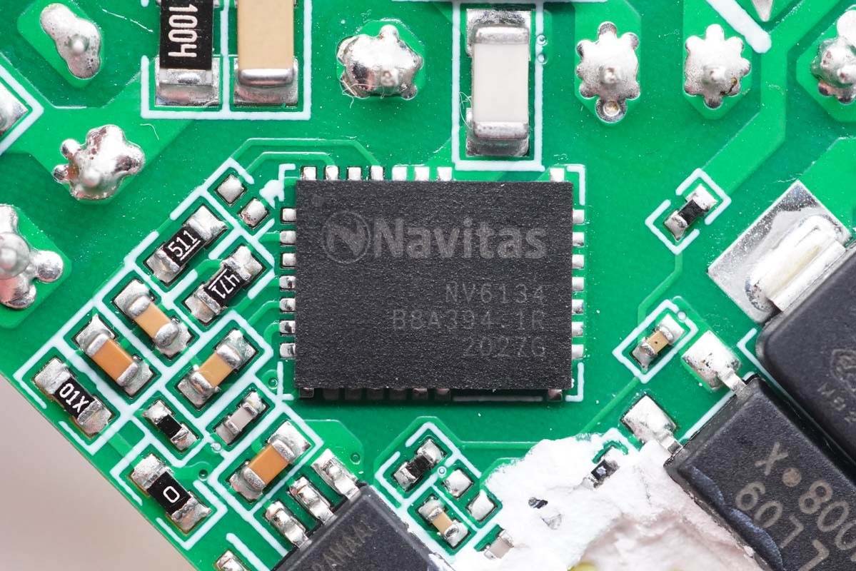 氮化鎵功率芯片采用納微NV6134,這是納微第三代氮化鎵芯片,擁有更強大的電氣保護性能,響應速度相比之前要快三倍。相比于分立的氮化鎵芯片/器件設計(Discrete GaN designs),納微GaNFast氮化鎵芯片具有10倍更高的靜電耐壓。