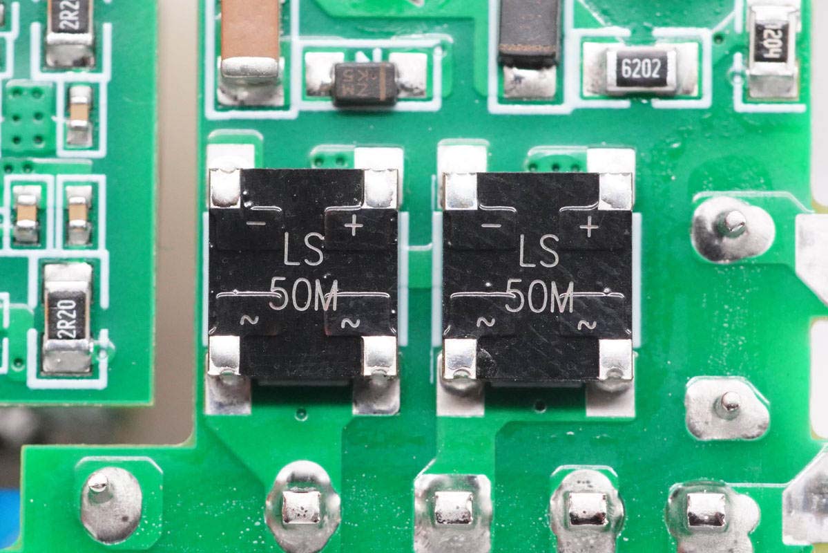 通過觀察發現,YOGA 65W雙C口氮化鎵快充充電器采用開關電源寬范圍輸出,同步整流為USB-C1輸出,USB-C2口采用同步升降壓調壓,協議芯片控制雙C口輸出電壓架構。下面我們從輸入端開始了解各元器件。