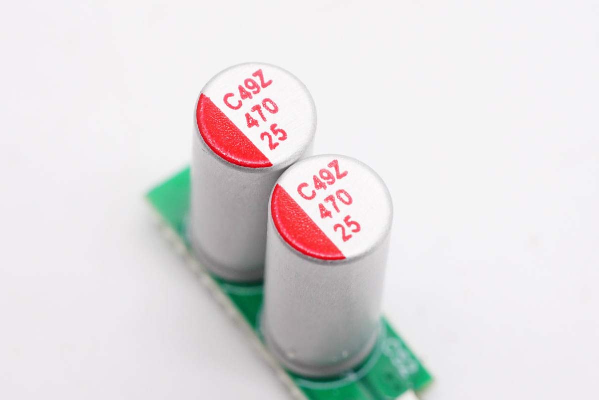 輸出濾波固態電容兩顆并聯,規格均為25V 470μF。