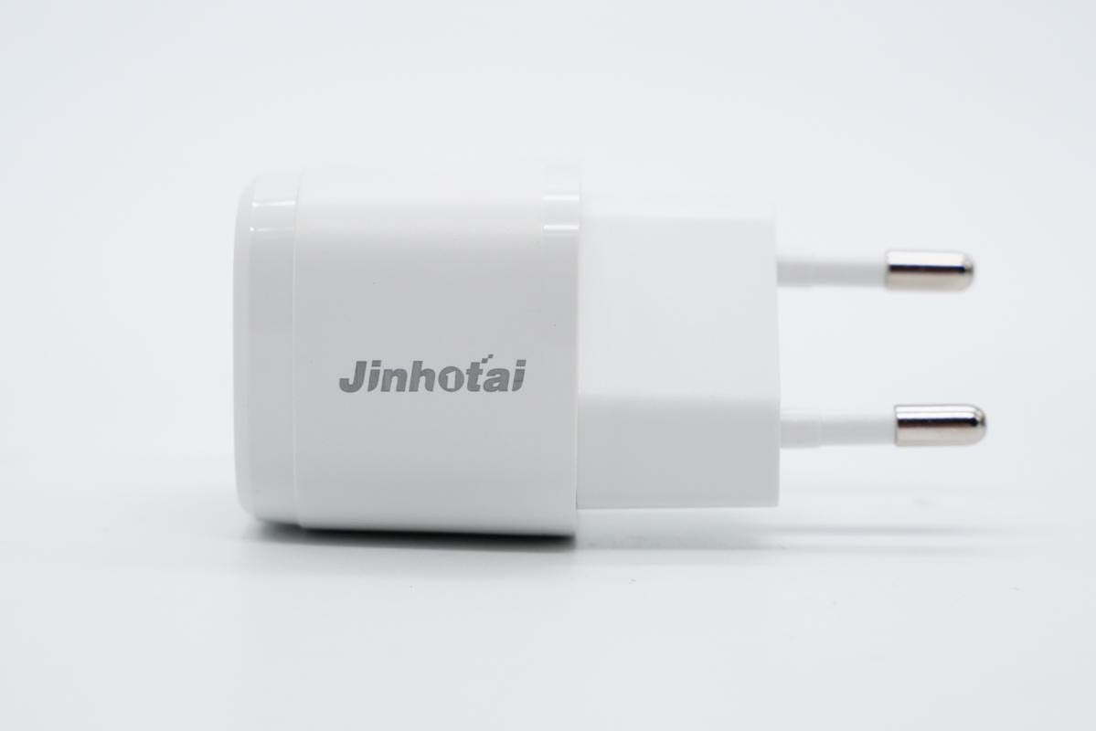 最近充電頭網(wǎng)拿到了JinHotai品牌的一款迷你25W PD快充充電器,配備的是歐規(guī)長插腳以及單USB-C接口,支持最大9V2.77A快充,此外還支持PPS快充,整體兼容性很好。下面我們就對這款充電器進行詳細拆解,看看產品做得如何。