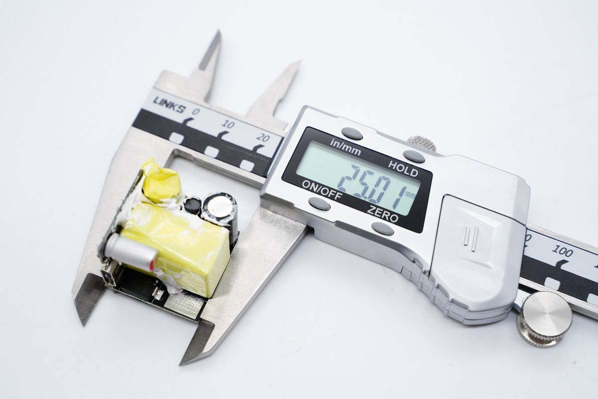 使用游標卡尺實測PCBA模塊長度為27.62mm。