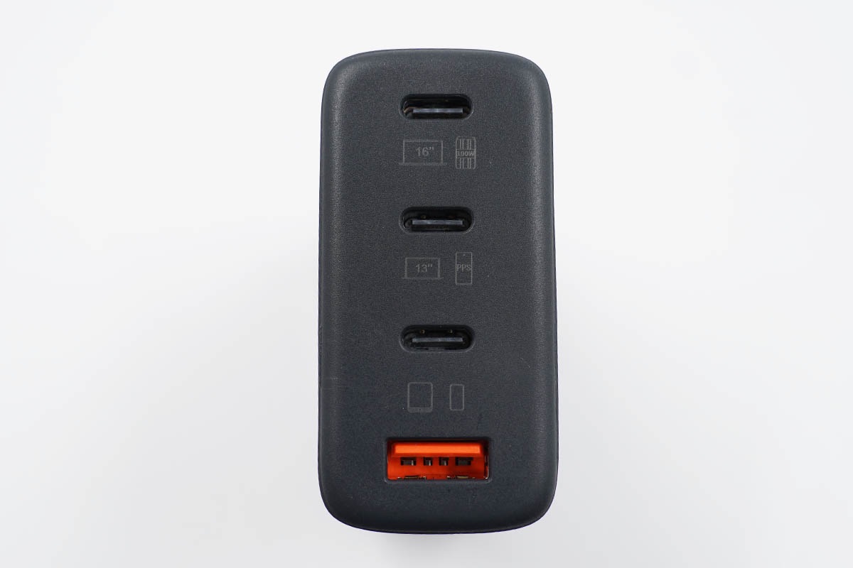 此次征拓S4氮化鎵充電器除了將功率升級到100W,而接口方面也是配置了3個USB-C接口符合現(xiàn)在USB-C流行的趨勢,貼近用戶的使用習慣。除此之外依舊標配了一個USB-A接口兼顧手持老款線材用戶的使用。