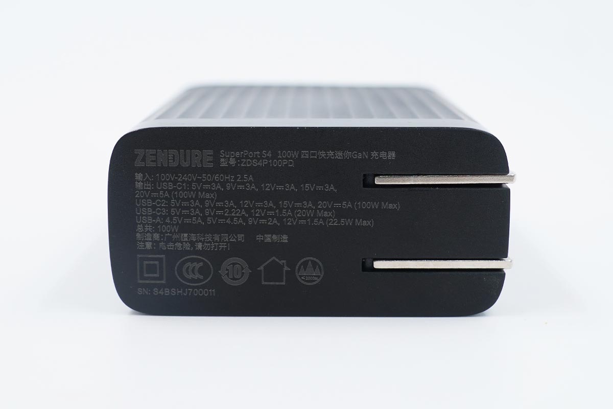 充電器的底部印有產(chǎn)品的性能參數(shù)信息。