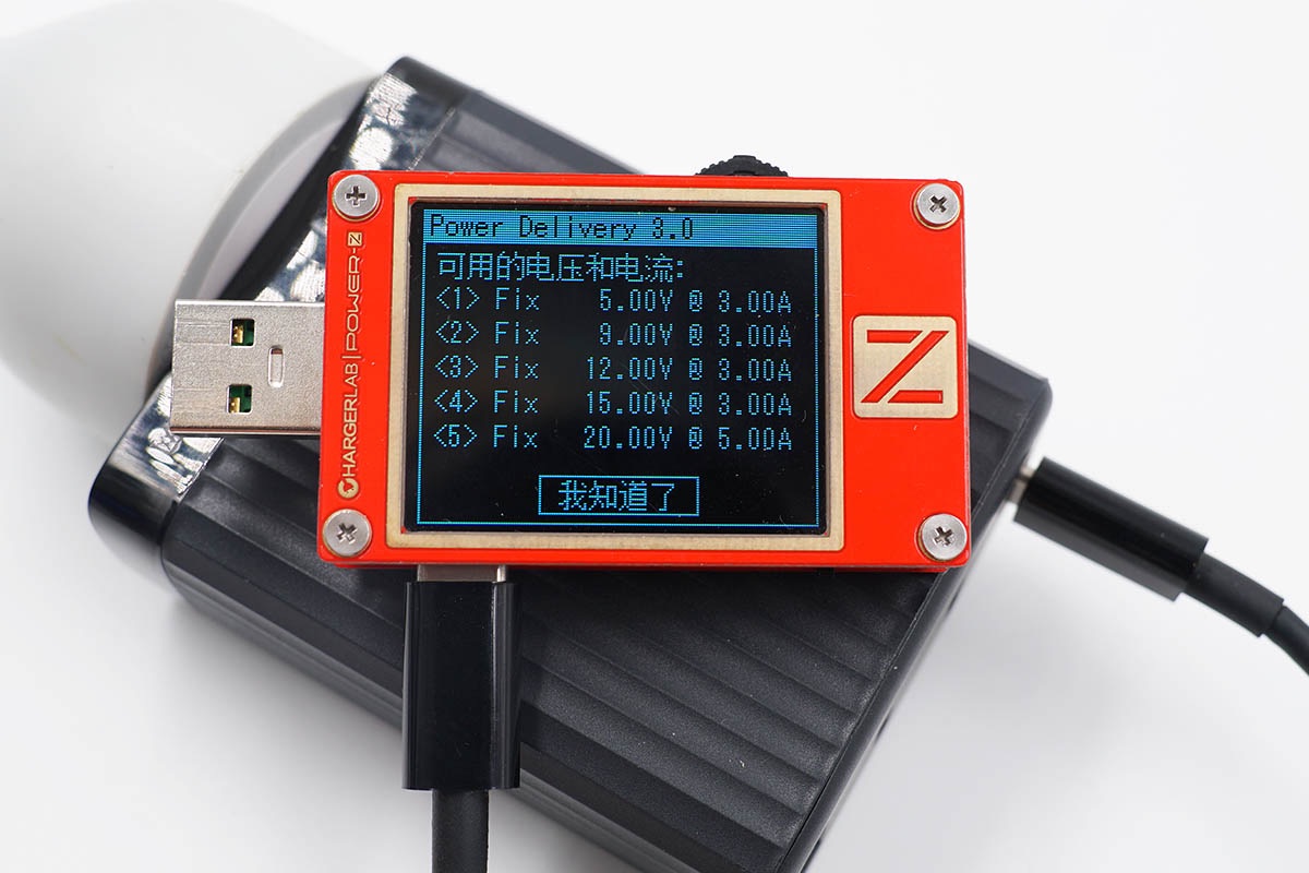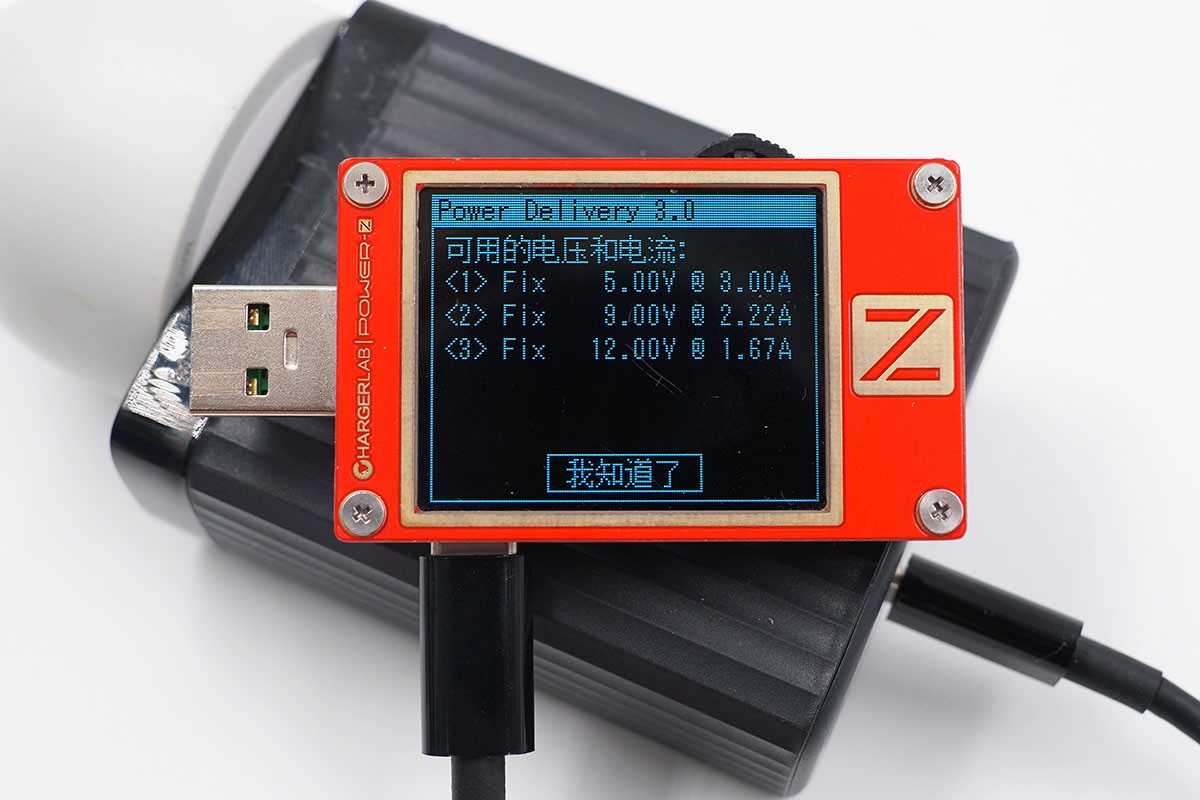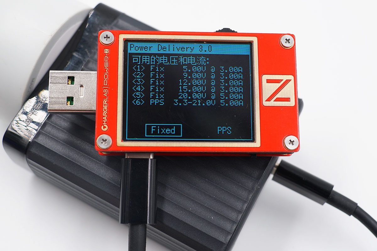 讀取USB-C3接口的PDO報文,支持5V3A、9V2.22A、12V1.67A三個固定電壓檔位,支持最高20W的輸出功率,這里的12V檔位和殼體印制的參數(shù)信息稍有不同。