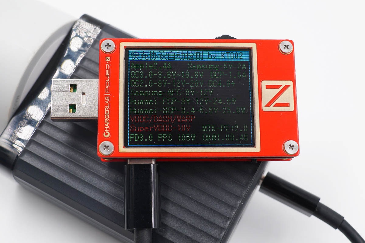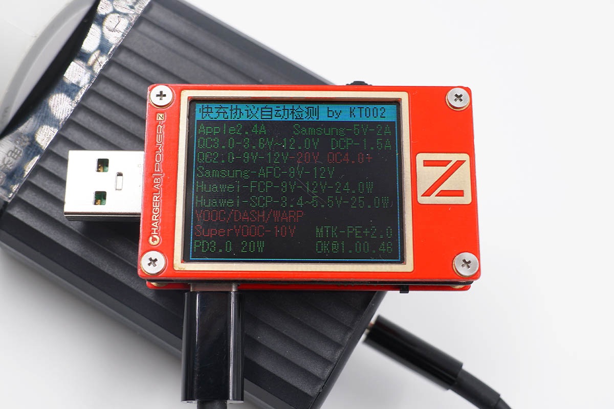 最后讀取USB-A接口的快充協(xié)議,實測支持Apple2.4A、QC2.0、QC3.0、AFC、FCP、SCP、PE等快充協(xié)議。